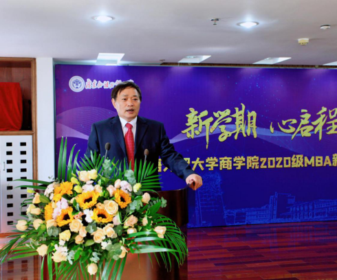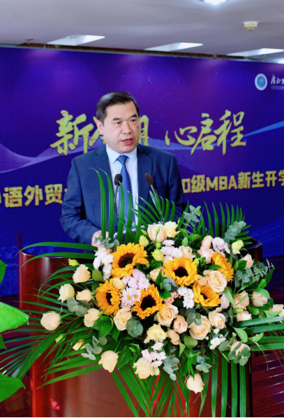 在庄严的国歌奏唱后,开学典礼正式拉开帷幕。首先,焦校长向192名MBA新同学表示热烈欢迎。他提到,今年注定是极具考验的一年,广外人在这段期间肩负抗疫使命,不畏艰险,迎难而上。面对突如其来的新冠疫情,各位同学经受各种考验,学校为大家所表现出来的坚韧、勇敢和自信,感到由衷的骄傲和自豪。谈到学子们迎来新学期的学习,他希望同学们珍惜难得的学习机会,协调好工作学习和家庭的关系,努力实现自我提升,同时创新思维,做到知行合一,带着高度的社会责任感,发挥创业精神,攻坚克难。