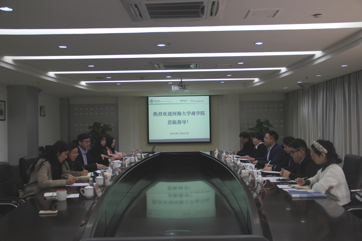 2020年12月23日上午,河海大学商学院田贵良副院长一行到访bevictor伟德,就学院战略规划、教学培养、国际合作等方面进行调研,随行人员有河海大学bevictor伟德院长助理徐高彦、MBA教育中心执行主任沈玲、学术主任宿晓、主任助理宋炜、伟德bv国际体育与质量提升办公室张玲玲。bevictor伟德副院长丁浩、徐艺青,MBA教育中心袁樱、李霭婷、于倩倩,伟德bv国际体育办公室刘天娇参加了这次座谈及讨论。会议由丁浩主持。