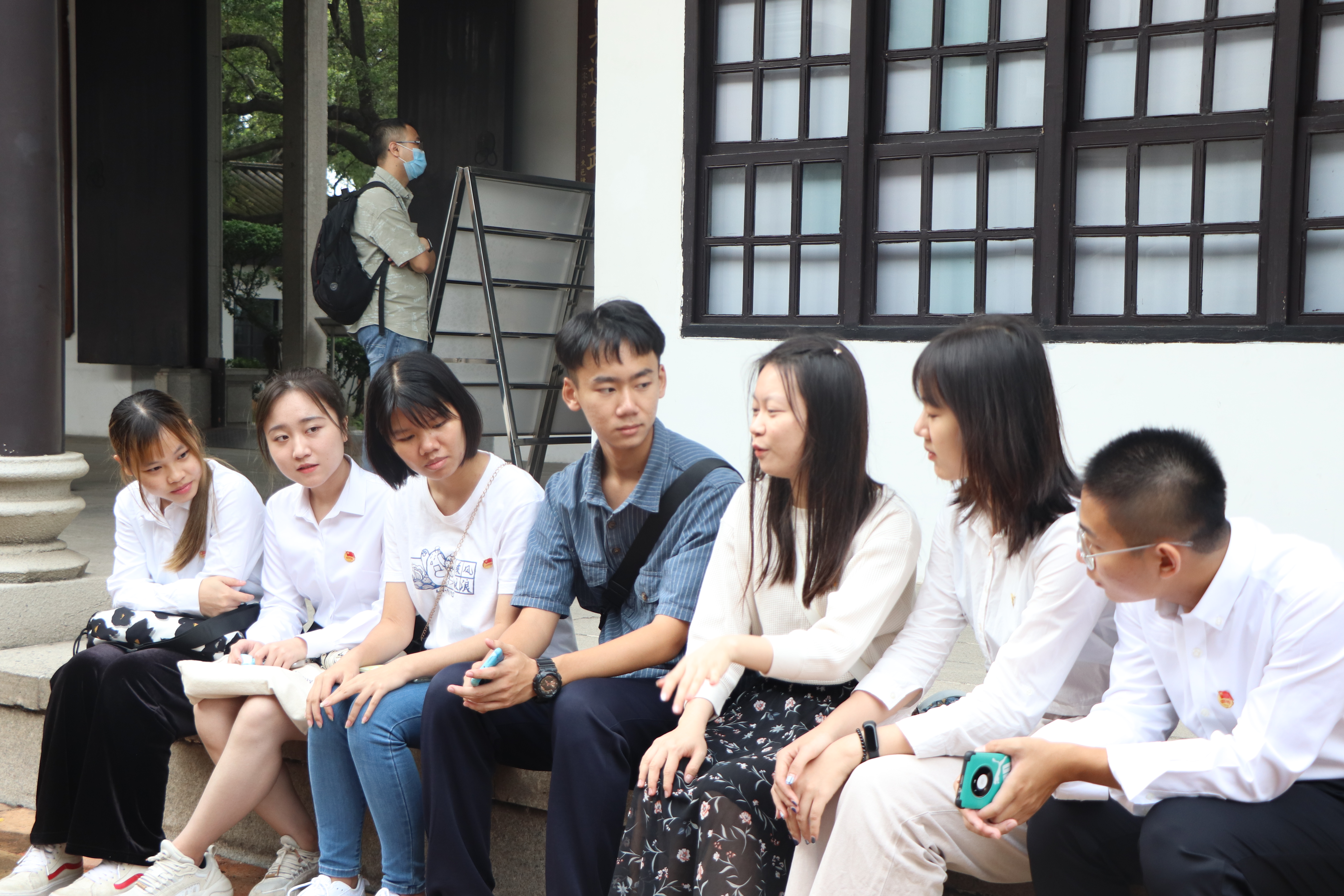 参观结束后,宣讲团成员在黄埔军校旧址纪念馆校舍边,交流、讨论研学心得,并就下一步宣讲工作开展集体备课。宣讲团团长杨泓楷谈到,通过实地参观,深刻感受到革命先驱的伟大历史功绩,唯有铭记历史,挥洒青春热血,才能更好地展望未来。陈依琪分享说,革命先辈振聋发聩的呐喊在百余年后仍拥有直击人心的强劲力量,新时代的我们同样饱含热情。佘冰雁交流到,亲眼目睹当年的信件衣物,近距离感受百年前一次次伟大的实践,更为之感到震撼。辛亥革命已经过去一百多年,但它的意义历久弥新。孔德绅谈到,最令人感触深刻的莫过于孙中山先生那句“革命尚未成功,同志仍须努力。”我们应继承先烈遗志,坚持中国特色社会主义道路,为夺取新的胜利而不懈奋斗。