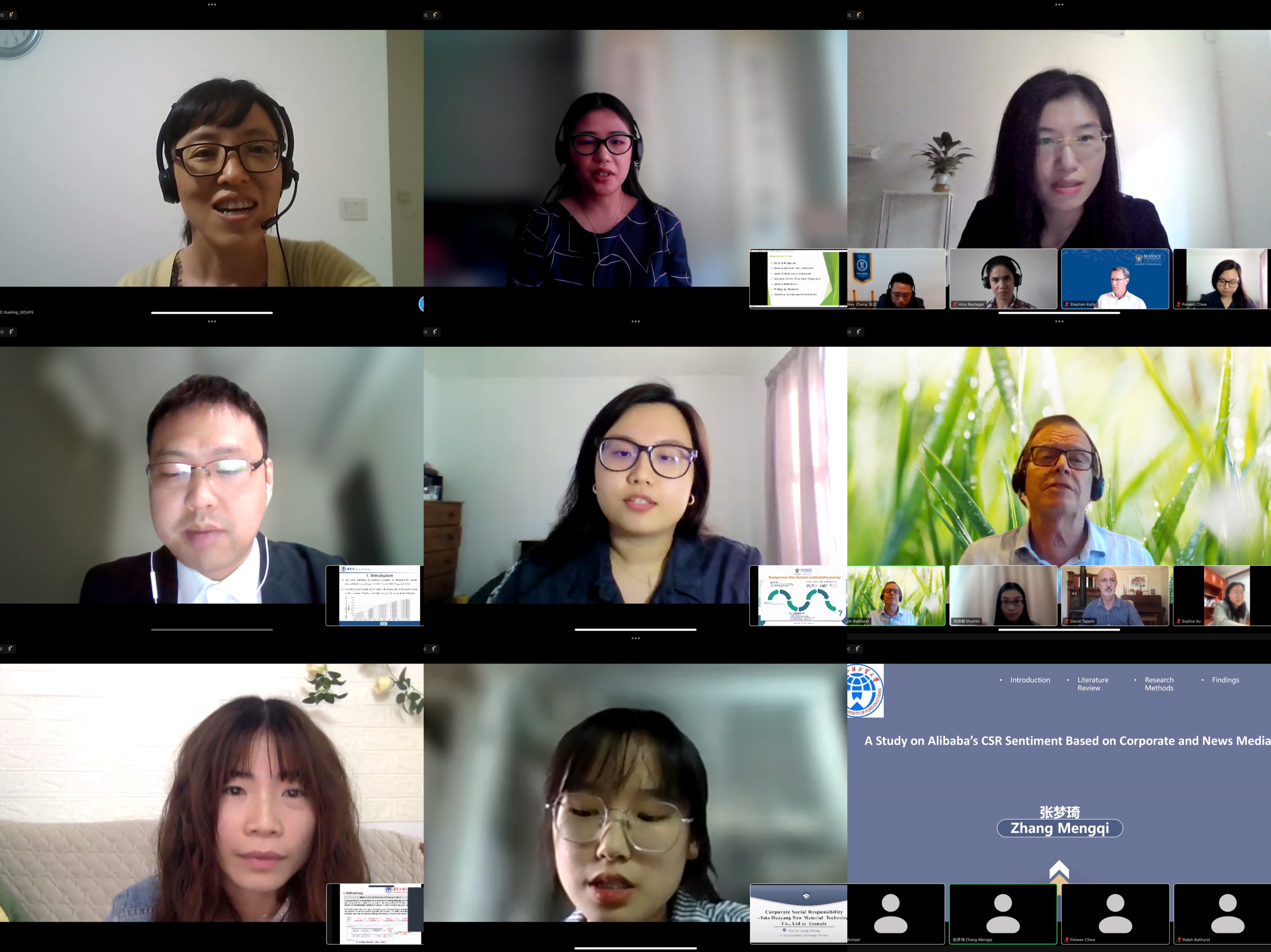 在主旨发言环节,苗学玲、Ralph Bathurst等9位来自bevictor伟德、梅西大学、奥克兰大学的老师及学生分表发表演讲,其主题分别有《企业慈善捐赠的情感动员:鸿星尔克和安踏微博评论的话语分析》、《进路与出路:探索伊甸园的漫漫长路(社会低碳发展的必要性与辩证发展研究)》、《探讨企业可持续发展举措的影响:新西兰的一项实证研究》。演讲嘉宾分别从不同角度阐释了学者对可持续、高质量发展和企业社会责任等的多样化研究成果。