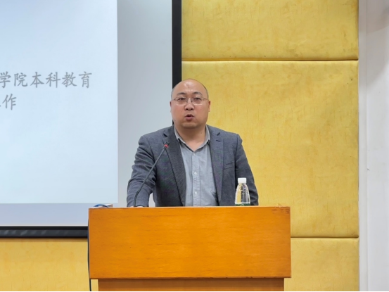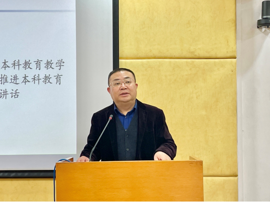 会议伊始,袁登华传达大学本科教育教学审核评估工作精神并进行动员讲话。他分别从国家、学校、学院的角度强调本次本科教育教学审核评估的意义和重要性。他指出我们应坚持“以本为本”,以评促建,结合新时代要求,进一步推动本科教学改革与发展。