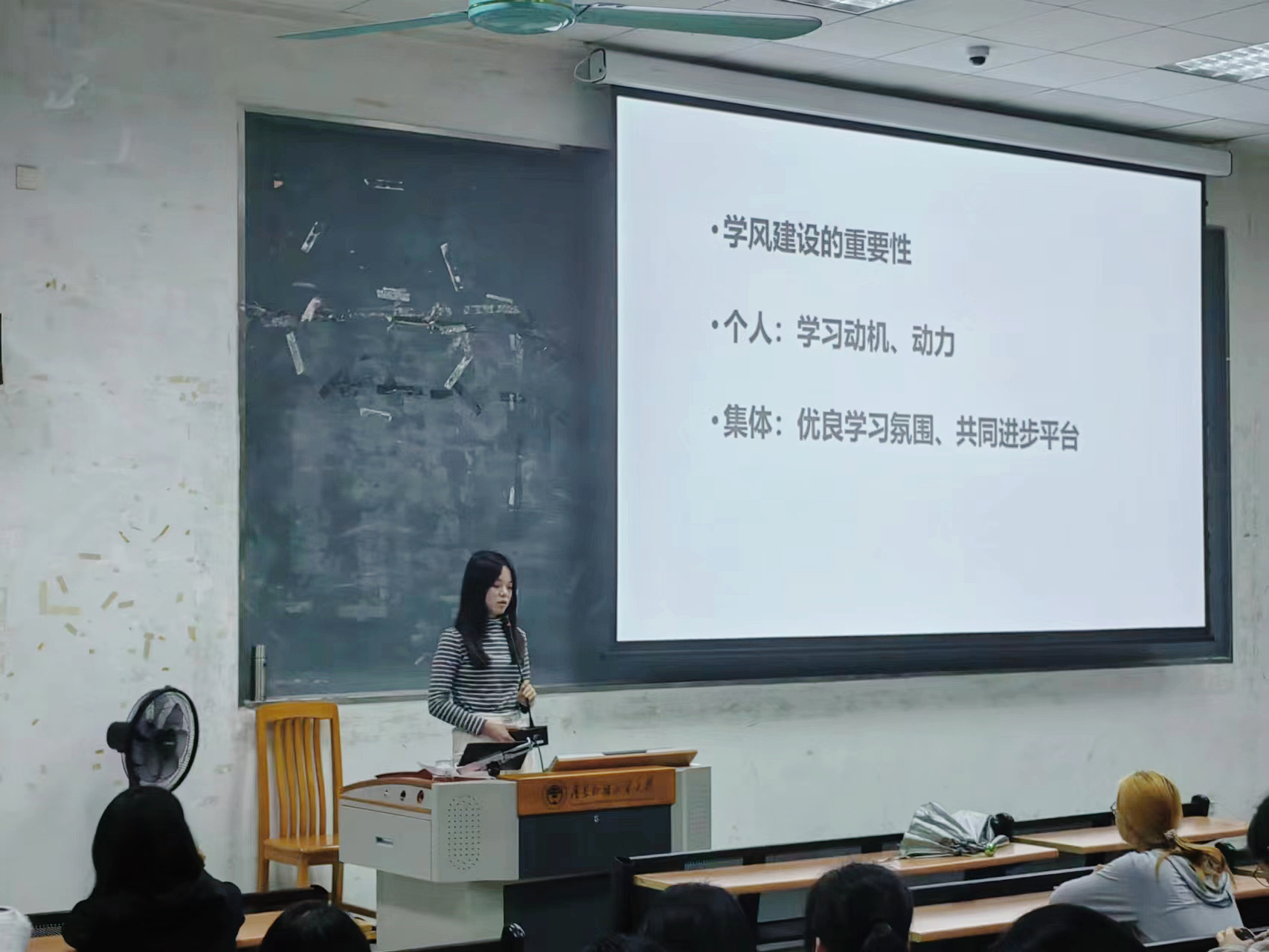 随后,向媛薇、王朕分别开展学风教育和纪律教育。他们强调,学风建设是全面推进素质教育,为社会培养高素质人才的关键。优良学风是激励学生奋发向上,努力成才的无形而强大的精神力量,是提高育人质量的重要保证。全体学生要从自己做起,争做标兵典型,成为优良学风的倡导者,全员行动,共创优良学风院风。