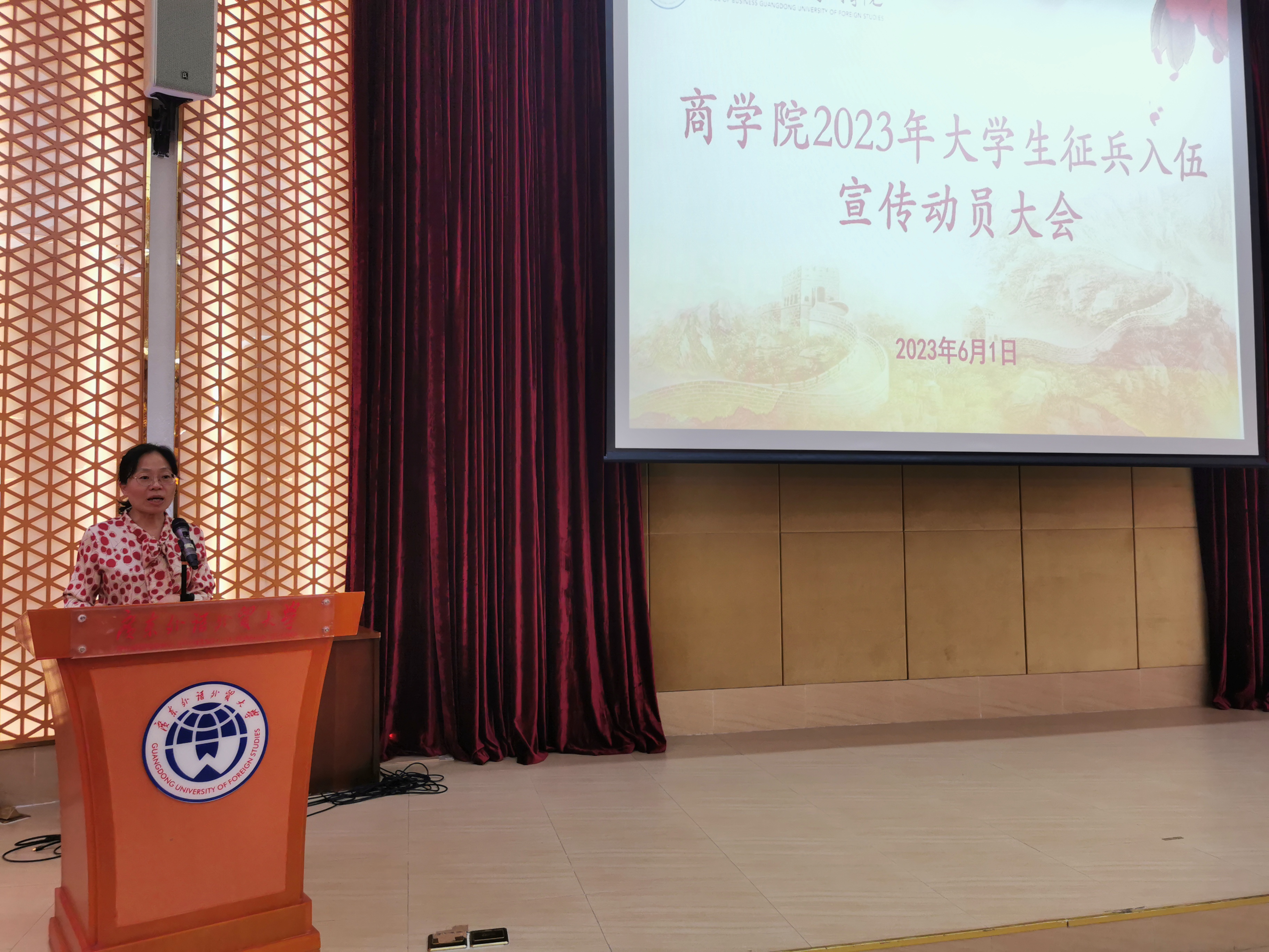 首先,肖喜明作征兵动员讲话,他号召同学们积极响应国家号召,树立立志报国成才的远大理想。他强调“强国必须强军,军强才能国安”,实现我国的强军目标需要每一个有志青年的积极参与。大学生入伍能够为我国军事力量注入新鲜血液,有助于我国的国防和军事建设。他激励更多的商院学子积极报名入伍,让青春在军营闪光,让梦想从军营起航。