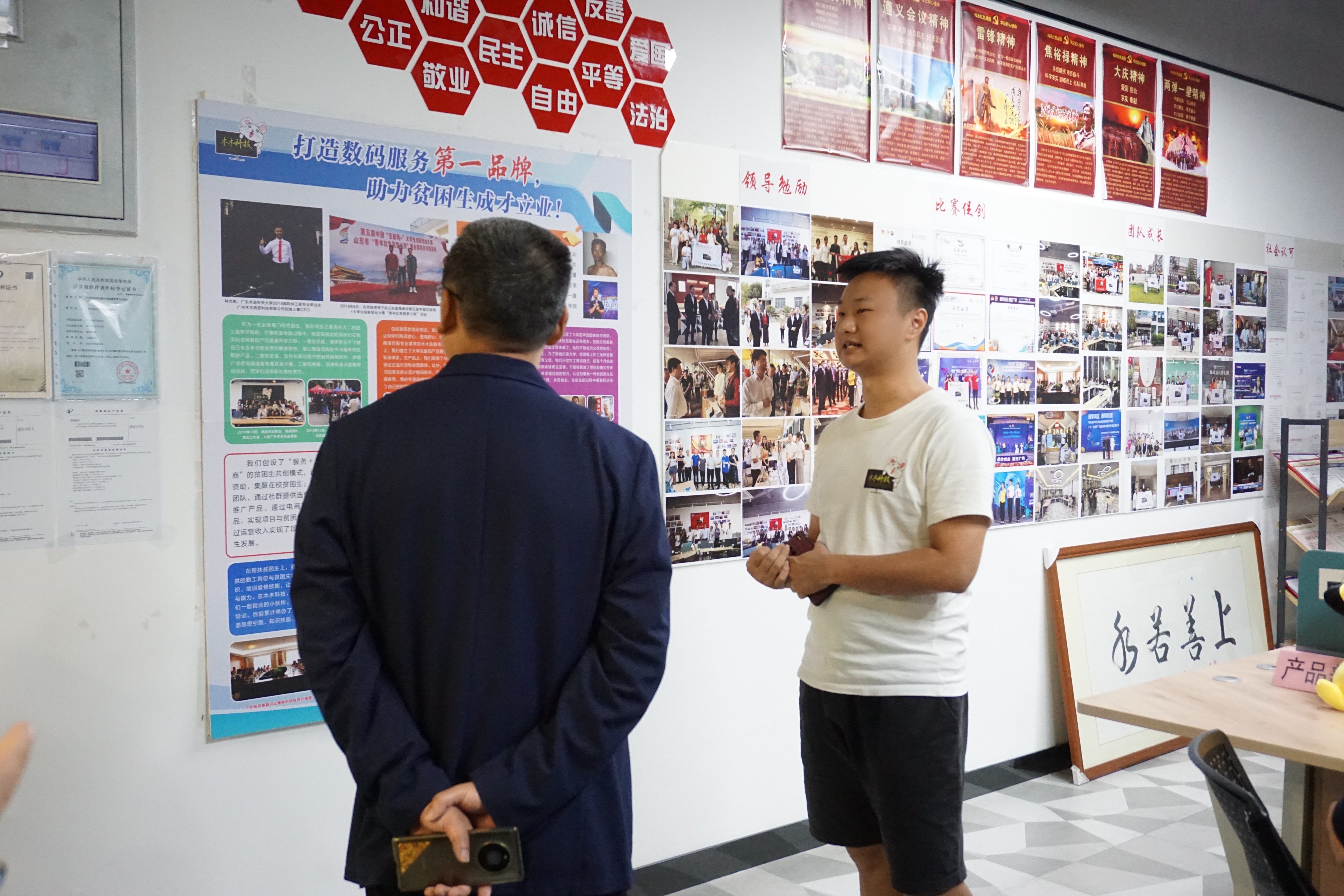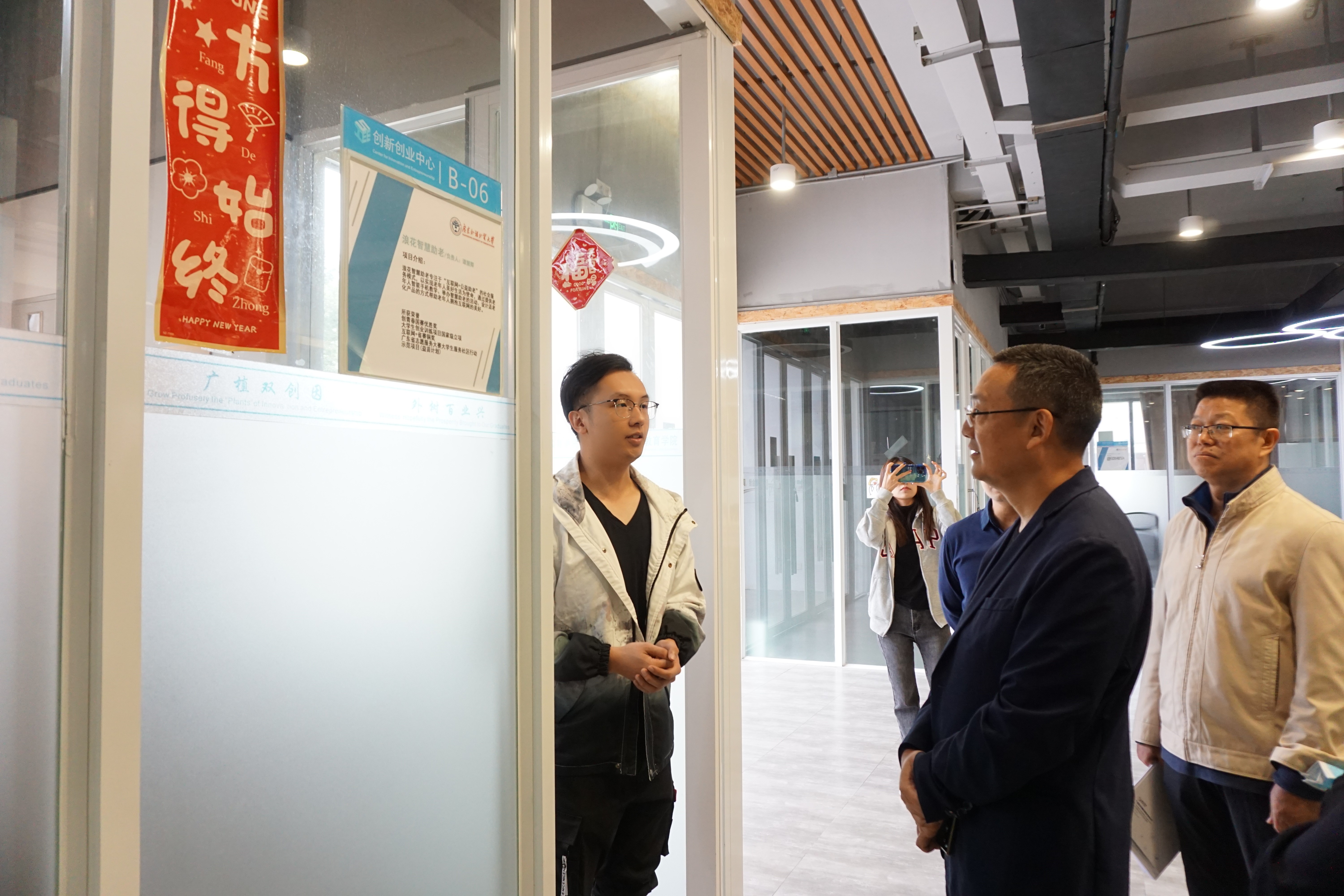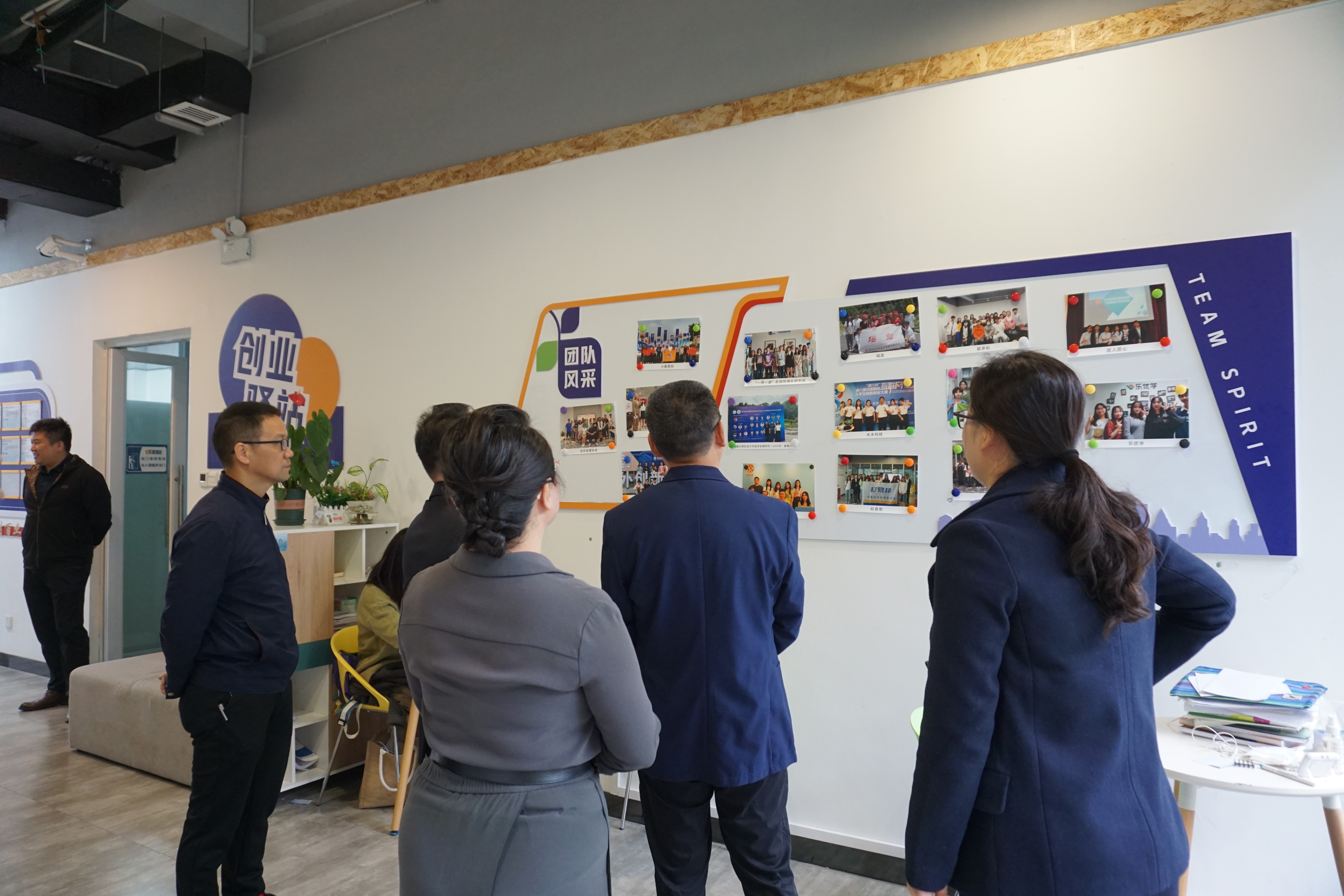 曹婷婷带领调研组一行参观国家级实践基地各功能区域、走访了入驻的学生团队办公室,与学生创业团队“浪花智慧助老”“木木科技”亲切交流,详细了解学生项目的发展,倾听师生民意,对bevictor伟德学子敢闯敢创、抓住用户痛点需求的精神和能力表示赞赏。