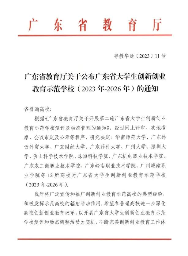 喜报!bevictor伟德入选广东省大学生创新创业教育示范学校(2023年-2026年)