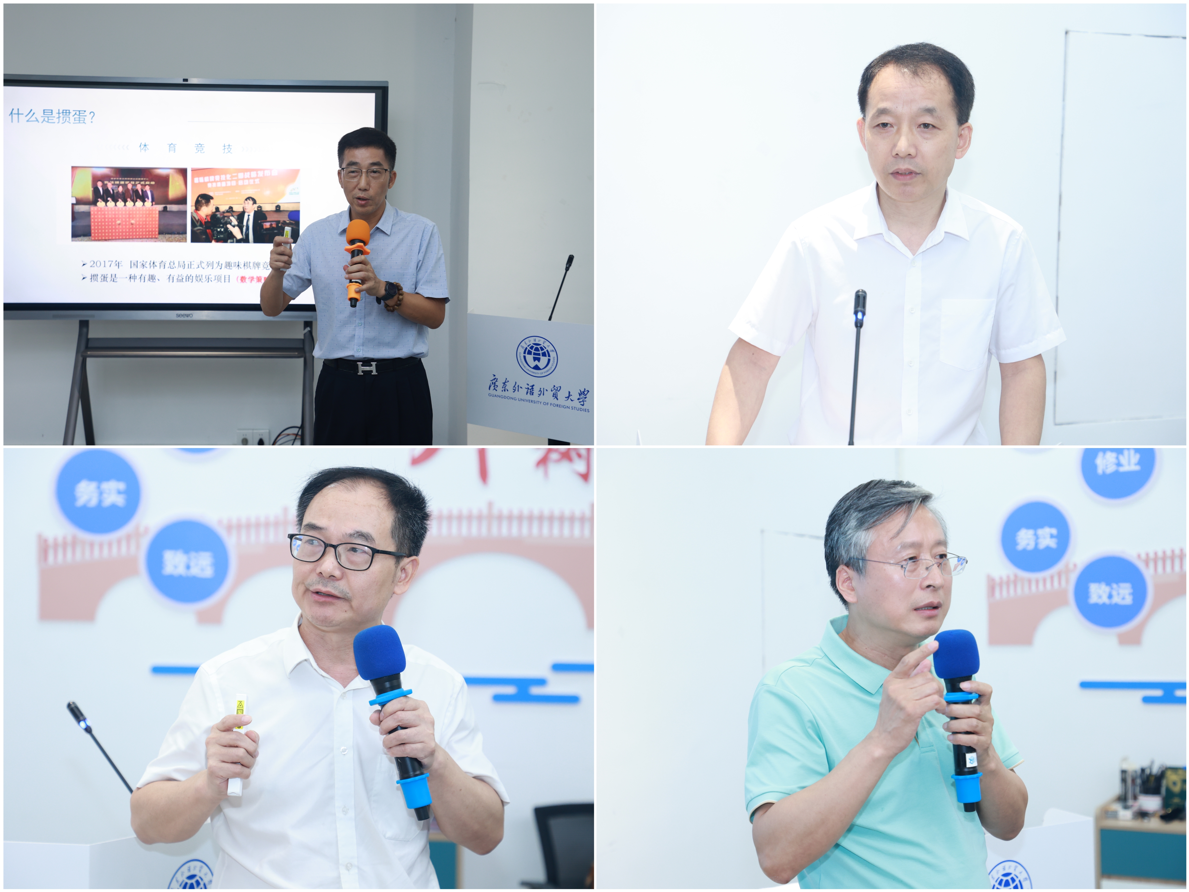 活动同期还举办了广外创新创业大讲堂第二讲。讲座邀请广东贝英基金管理有限公司董事长施少斌,广州大学城管委会副主任任树兵,广州大学创新创业学院院长、教授、博士生导师王满四和广东孵客科技孵化集团董事长冯洪亮4位导师代表作主题分享。施少斌董事长结合体育运动掼蛋的原理分享了企业管理经验和深厚的行业知识;任树兵副主任就大学生创业的思考进行了深入的探讨,提供了关于如何结合赛事与市场需求进行创新的洞见;王满四院长就构建面向人工智能的高校创新创业教育生态系统进行了主题分享,为教育改革和人才培养提供了新的思路;冯洪亮董事长作为资深的创业导师和投资人,在大讲堂上分享了广外创联如何赋能校友创新创业,探讨了校友网络和资源对于创业成功的重要性。