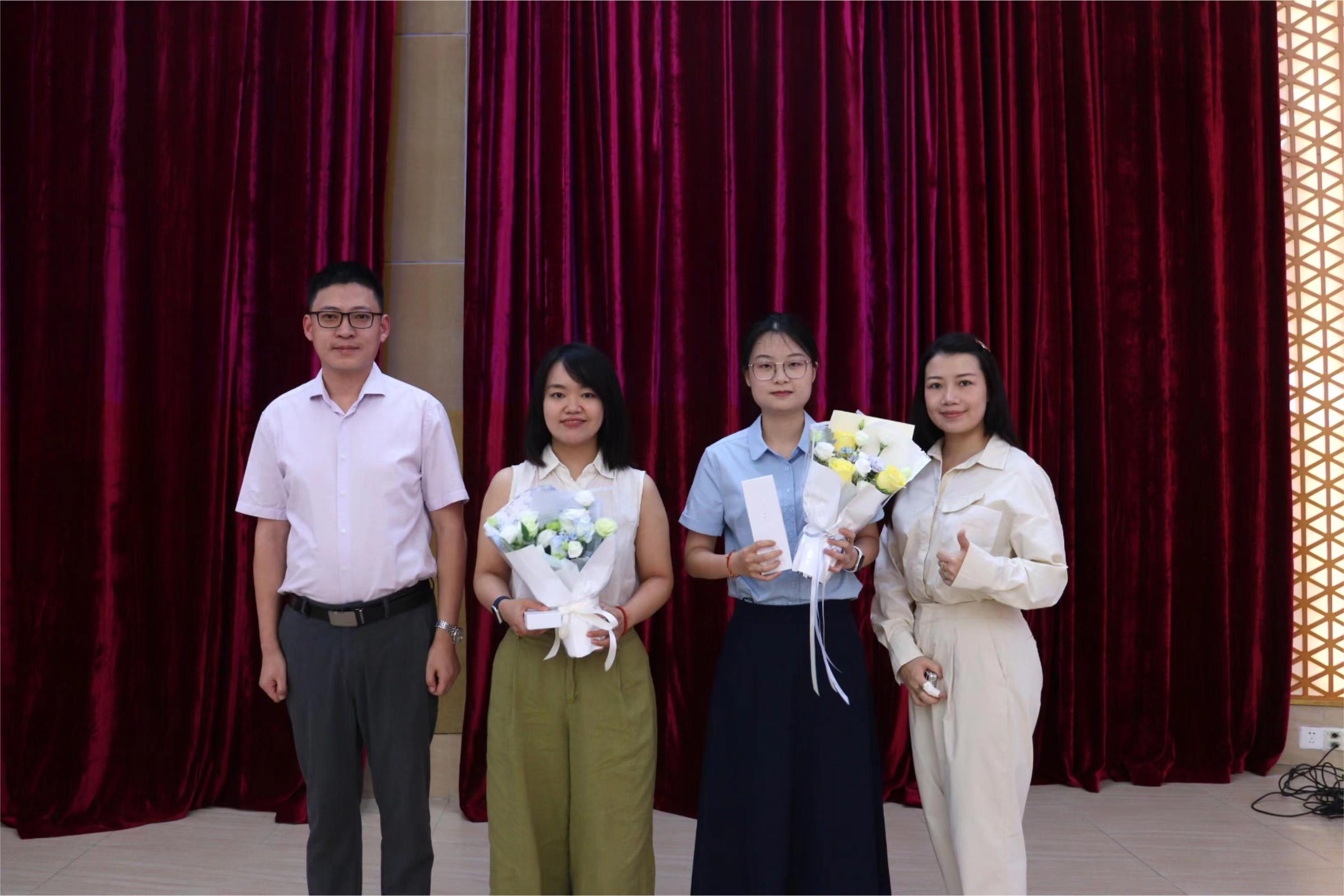 工会主席丁浩、办公室主任程思敏代表学院欢迎新进教职工