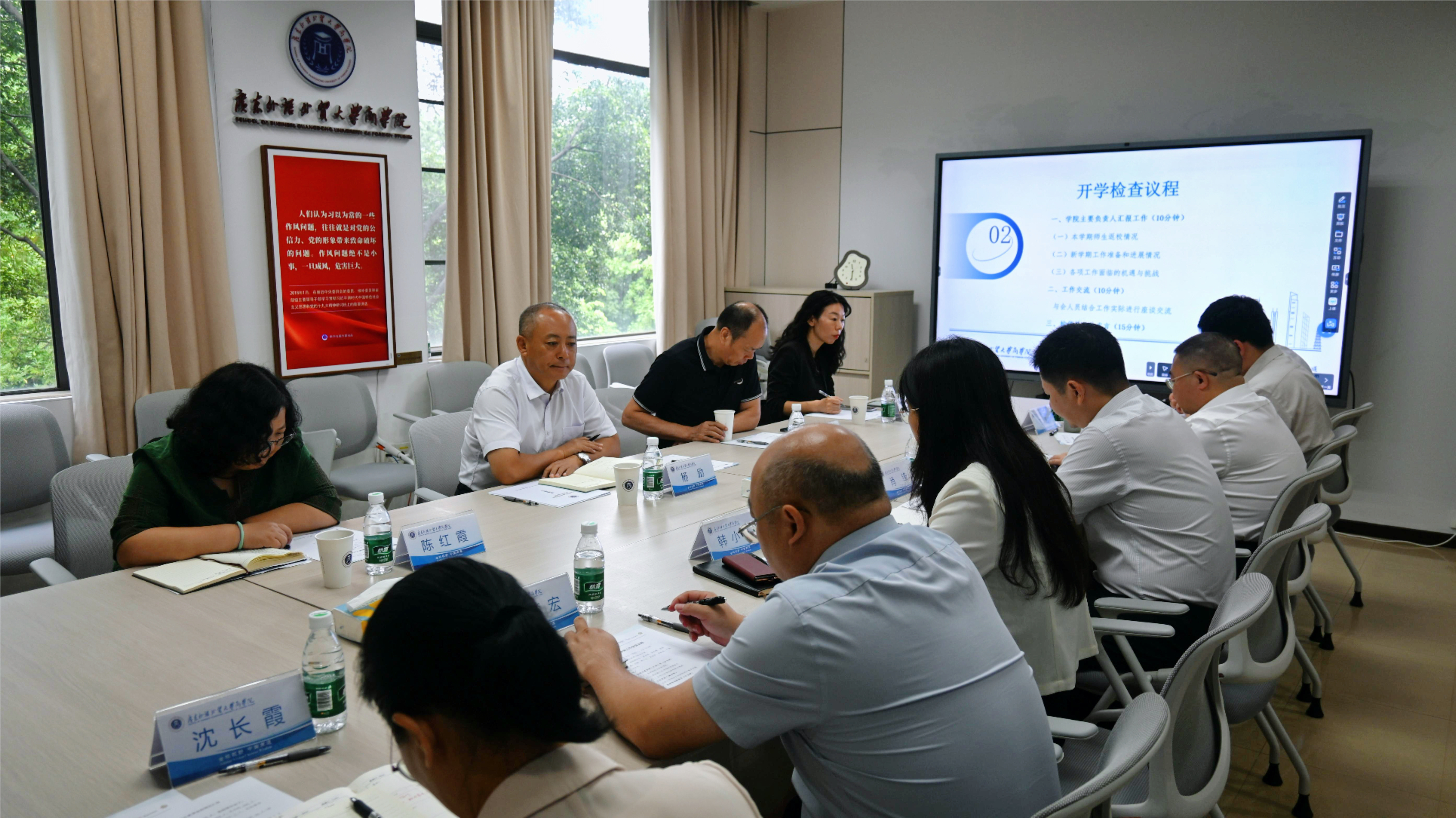 9月8日,校党委常委、副校长杨励教授率队,与就业指导中心主任康为茂、图书馆馆长陈红霞、教务部副部长唐静一行检查bevictor伟德开学工作,并就学科建设和人才培养等工作提出指导意见。bevictor伟德全体班子成员参加了会议。
