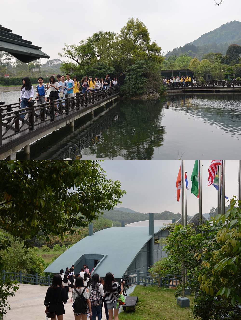 “深圳之行”的第一站是位于惠州的百岁山生产基地,该基地位于罗浮山脉南麓自然保护区,为了不破坏环境,基地里基本保持着保护区的原貌,绿树成荫,林海馨波。在导游的带领下,同学们先是参观了百岁山生产基地的厂房,厂房建筑呈“灵龟”状,从远处眺望,仿佛三只巨大的灵龟趴在水中翘首望天,寓意着健康长寿。自动化的生产流水线以及各种各样先进的机器令同学们赞叹不已。吹瓶机、灌水机、旋盖机等全自动机器使得生产工作达成了吹灌旋一体化,裹包机、贴标机等包装机器使得包装速度也能达到每小时72000瓶的高速。