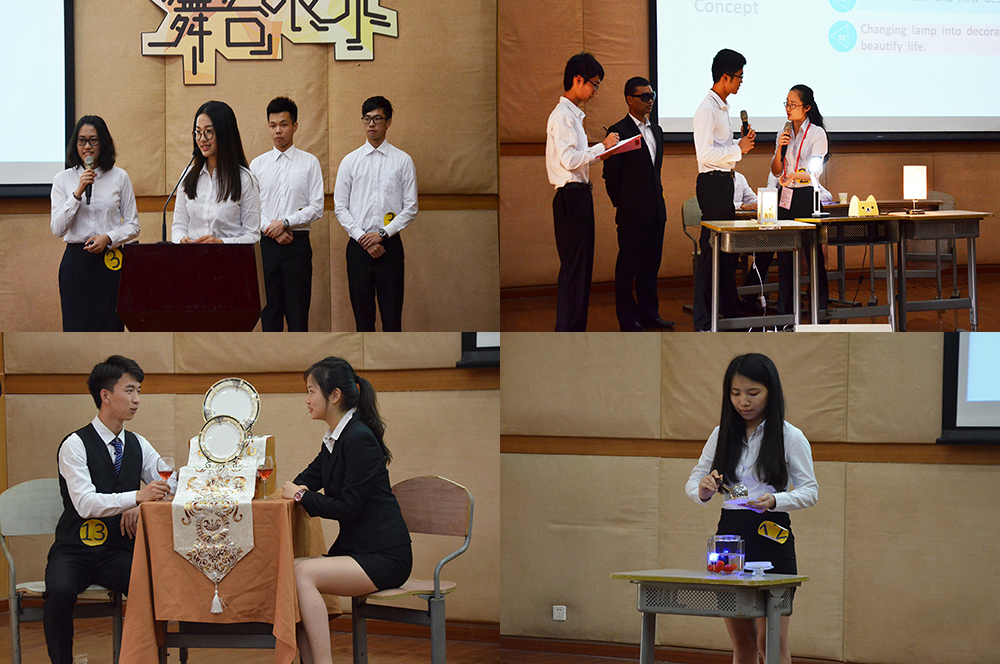 “魔灯时代LED灯饰”团队通过一个接待顾客的小短剧,深刻地展示了他们团队的创新创业精神。在展示中,员工向顾客介绍产品特点、营销策略以及资金计划,同时也向台下所有人展示他们的内容,特色鲜明,使展示更具吸引力。随着经济发展,人们越来越追求更高品位的生活,“一格”团队以美为核心,独立创意,以设计为主,不仅让餐具变得更加健康生态,而且唯美清新,如同一件件艺术品。作为同样追求更高生活水平的“恒扫千菌科技”团队,则是以科技为主,着重迷你除菌除湿产品的研发。他们在调查了消费者对除菌除湿的消费情况之后,把市场定向为我国的华东华南地区,并且制定了多方位多层次的营销策略和资金计划。而“简碟餐具”团队则用一个生动形象的卡通视频展示了餐具在生活中的重要性,引出了他们的核心价值——让人们能够使用更简单方便的餐具。
