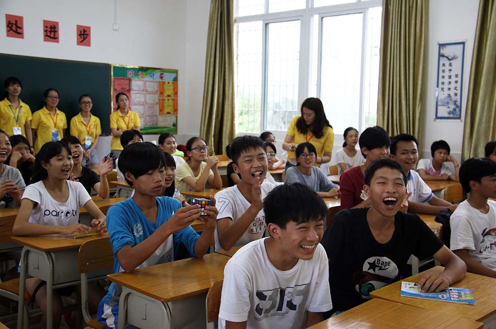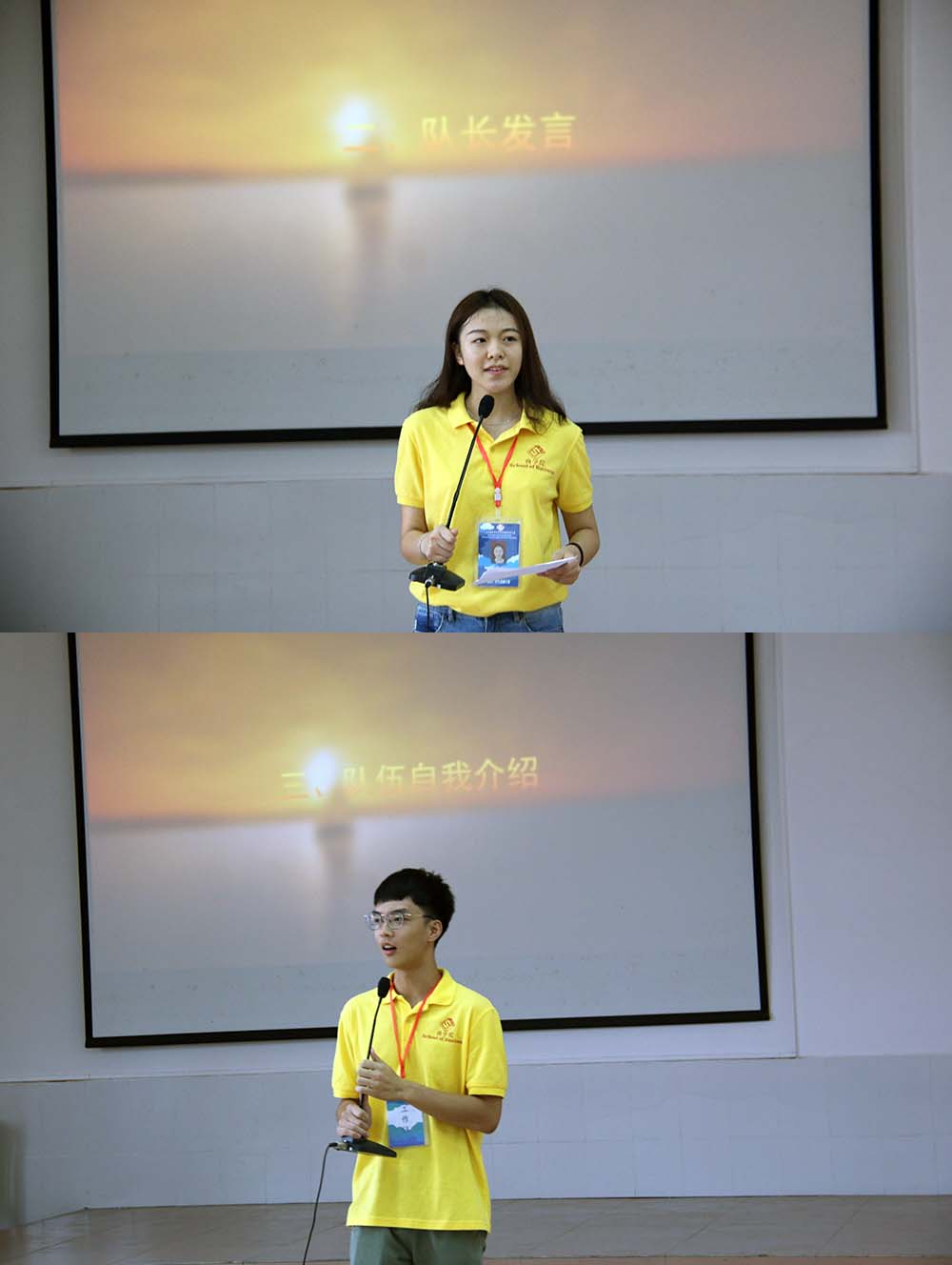 团学服务队队长方彤琪其次发言,她提到,希望能够教给廊田中学的同学们一种全新的思考与学习方式,在这次“三下乡”暑期社会实践活动中与同学们成为共同学习、共同交流、共同相处的很好的朋友。