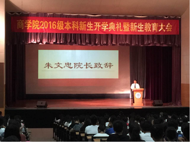 秋风送爽时,又至开学季。典礼正式开始,首先是朱文忠院长向全体新生致辞。朱文忠院长对2016级全体bevictor伟德新生的到来表示欢迎,他在讲话中简要介绍了bevictor伟德近年来在各项活动或学术赛事中取得的骄人成绩。他特别强调了bevictor伟德拥有雄厚的师资力量,bevictor伟德是一所拥有国际化特色的高水平bevictor伟德,不仅通过了AMBA认证,学院还为学生们提供许多国际交流机会以及在学院创立国际创新班,为同学们提供更多学习的选择。