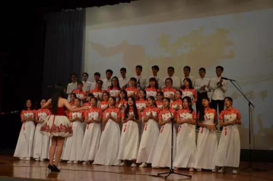 身穿着民族风style的管理1612班的同学们一上场就让观众们眼前一亮,当然更令观众们赞叹的是他们那首唱的铿锵有力的《在太行山上》,他们的指挥雷雨佳全程都十分投入,她对节奏的掌握赢得了全场的认可。他们将《I will follow him》的中间部分转换为欢快、动感的节奏,全班同学整齐地打着节拍,左右摆动,全场的气氛都活跃了起来。