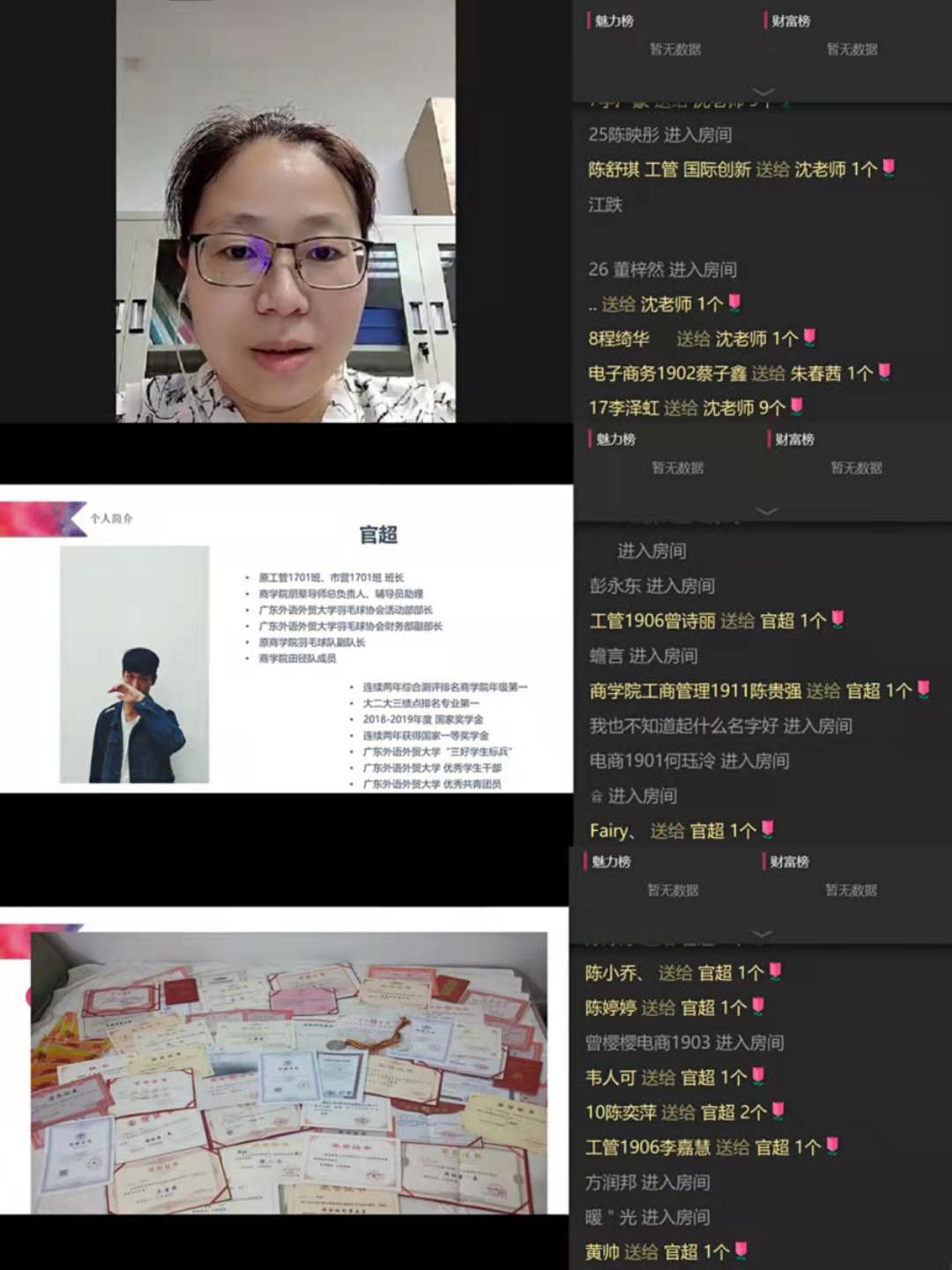 5月14日晚上7点,bevictor伟德于线上举办“凤鸣广外”榜样宣讲会。会上,党委副书记沈长霞对学业、学生工作、志愿服务等方面有突出表现的学生进行了表彰,并表达了对19级商院学子的忠心期盼与祝福。榜样分享环节,国家奖学金获得者官超和赖世海、校长奖章及国家励志奖学金获得者庄美儿均结合了自己的经历向商院学子分享学习方法,而同学们也在交流环节积极提问,吸取成功经验。此次宣讲会充分发扬榜样精神,将激励商院学子向榜样学习,为实现梦想不懈奋斗。