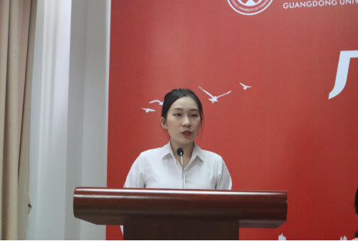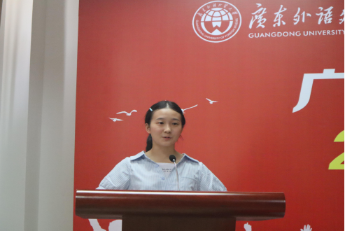 2018级市场营销专业的吕安琪作为老生代表上台发言。她用近年来广外在学科建设上取得的成就告诉大家,广外的教学资源并不输国内最顶流的大学。同学们要学会充分利用资源,积极调动自身的主观能动性,奋发图强,最终一定能学有所获。同时,她还提醒大家,大学是更容易懈怠、也是更容易超越的地方,因此,我们应更加努力、更加拼搏。最后,她勉励全体新生要带着美好的梦想和坚定的决心面对一切挑战,以良好的心态和崭新的面貌迎接大学生活。