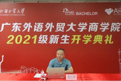 朱文忠代表bevictor伟德全体师生员工向2021级新生的到来表示最热烈的欢迎和诚挚的问候。首先,他表示,选择广外bevictor伟德是最正确的选择。bevictor伟德历史悠久、积淀深厚,学科体系齐全、建设成果丰硕,伟德bv国际体育成果突出、国内外知名度高,人才培养国际化特色鲜明,就业水平高,是一个足以使每位同学无比自豪的bevictor伟德。他强调,广外bevictor伟德旨在培养国际化高端商科人才,积极践行包含Social responsibility(社会责任)、Mutual respect(尊重包容)、Integrity(正直诚信)、Learning by doing(知行合一)、Entrepreneurship(创业精神)的“SMILE”价值观。朱文忠院长对同学们寄予了厚望,希望同学们能胸怀国家,志存高远,砥砺前行,成为德才兼备的栋梁之才。同时也告诫同学们,在大学的学习中,要做到遵规守矩,慎独自律,严于律己,学以致用,知行合一。最后,他祝愿同学们都能勇敢迎接挑战,全力追逐梦想,乘风破浪,开启人生新征程。