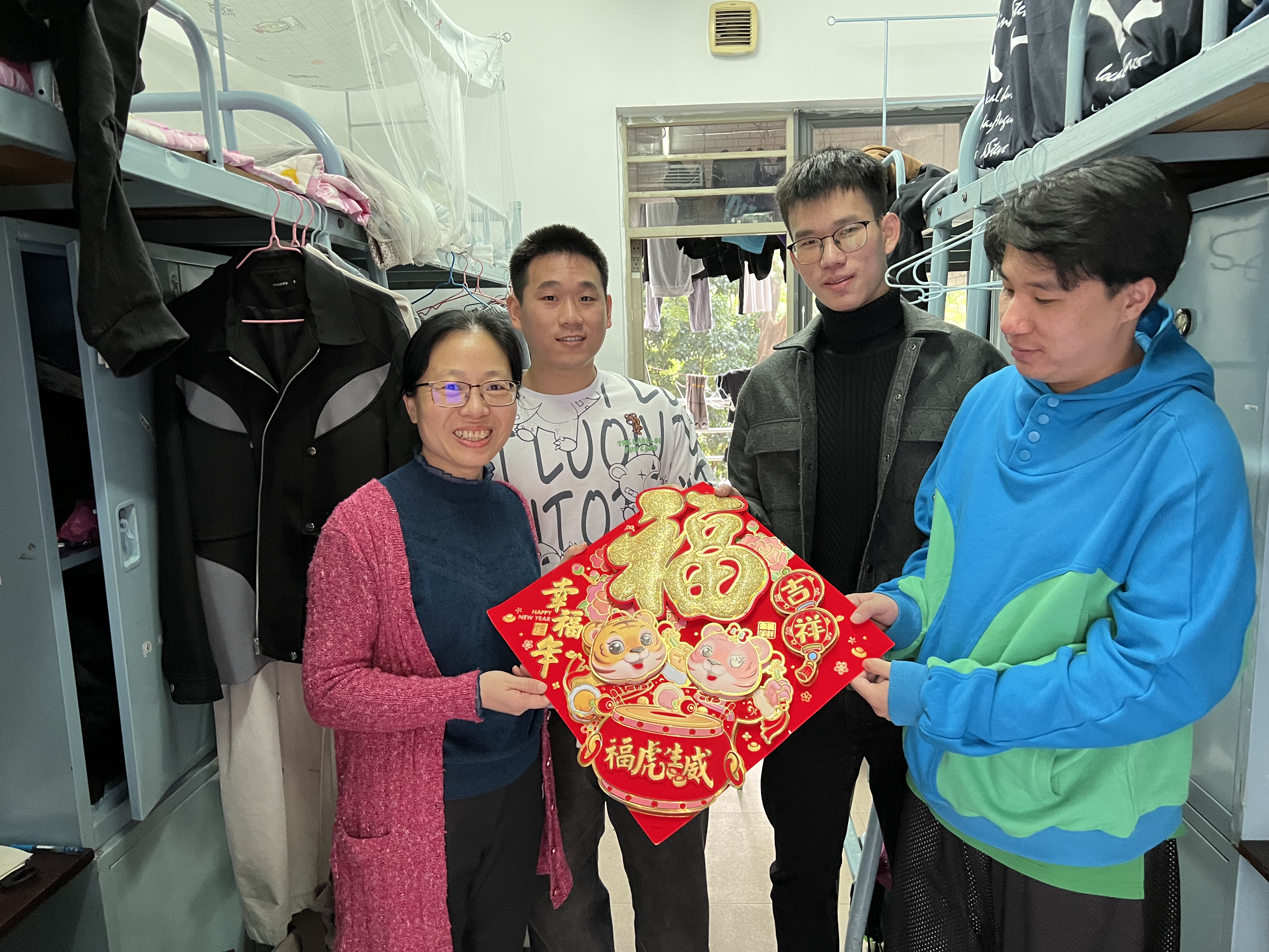 安全教育大会结束后,沈长霞和辅导员们分头前往学生宿舍关心、慰问留校学生,向家庭经济困难学生发放慰问金,提醒留校同学注意假期安全,并给同学们送上新年祝福。