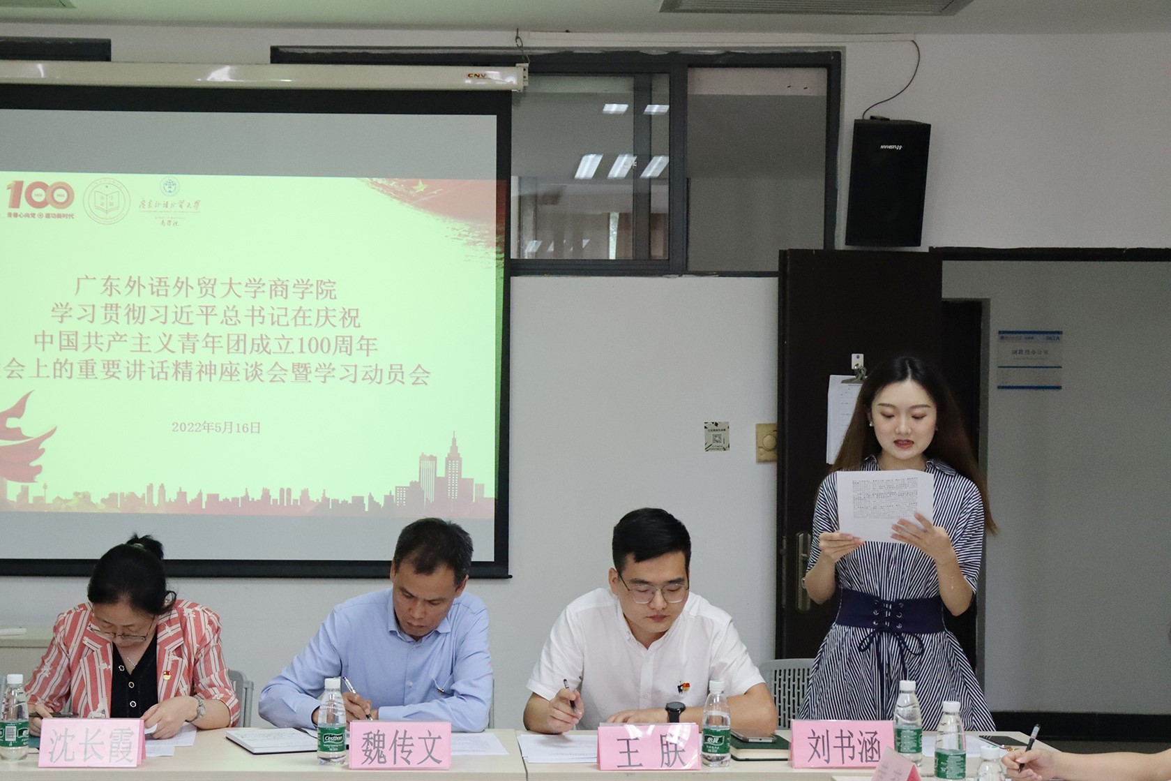 最后,沈长霞进行学习动员。她强调各团支部和广大团员要继续深入领会习近平总书记重要讲话精神的重大意义和深刻内涵,要扎实推动习近平总书记重要讲话精神学习宣传在广大青年学生中深入开展,要切实把习近平总书记重要讲话精神贯彻到共青团和青年工作的全过程各领域,做到原原本本读原文、认认真真悟原理,吃透精神实质,把握核心要义,努力以饱满的青春风貌,最好的工作成果,助力新商科的专业建设发展,以优异成绩喜迎党的二十大的胜利召开。