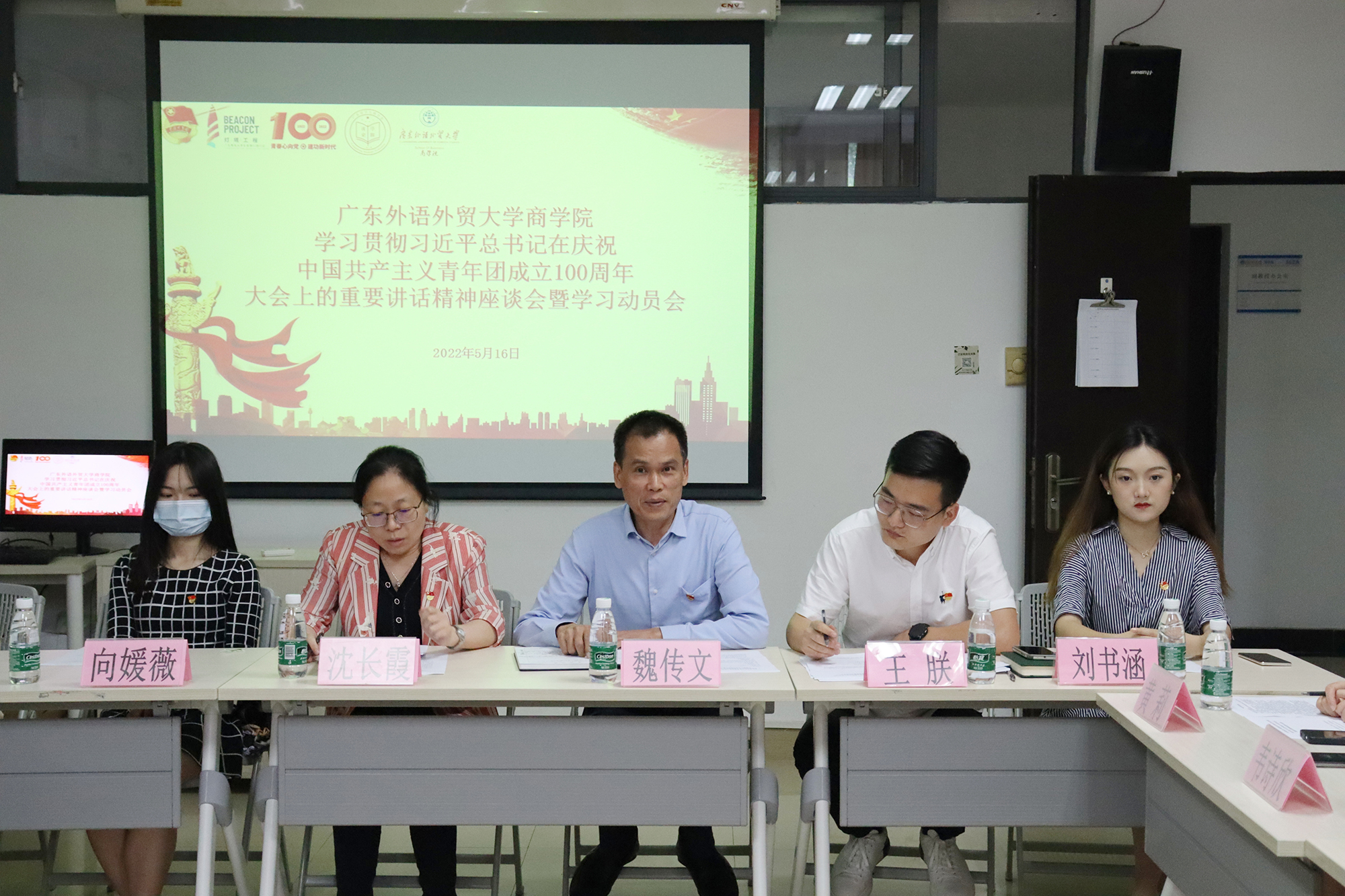 5月16日,bevictor伟德学习贯彻习近平总书记在庆祝中国共产主义青年团成立100周年大会上的重要讲话精神座谈会暨学习动员会在南校区院系办公楼366举行。bevictor伟德党委书记魏传文,副书记沈长霞,团委书记王朕,马克思主义学院教师、bevictor伟德团委副书记王正,bevictor伟德组织员向媛薇出席会议。bevictor伟德团委学生会骨干代表,bevictor伟德青马班成员代表,bevictor伟德学生兴趣项目小组成员代表,bevictor伟德班级团支部代表参加活动。会议由王朕主持。