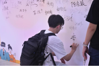 新生在迎新墙签名留念