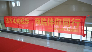 团委学生会布置迎新横幅