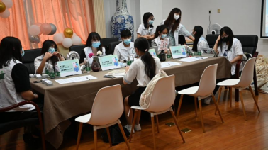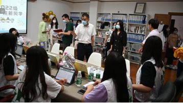 院系楼报到处,各班朋辈导师正在等待新生前去报到注册。他们细致地讲解着校园生活的各项知识,帮助新生们更好地适应新环境。