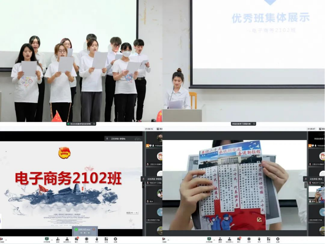接着,电子商务2102班的同学们以视频、话剧、双语故事和手抄报等形式带来优秀班集体展示,让大家感受到了团日活动别样的乐趣。他们借话剧《重温红色经典,赓续英烈精神》表达对百年来为革命奋斗的英雄烈士的缅怀和对先辈崇高精神的敬仰,通过中英双语分享邓稼先的故事和华罗庚的故事,呼吁更多的青年了解科学家的故事、学习科学家的精神。最后,他们以展示海报、手抄报、寄语和手语操的形式表达了对党和祖国的美好祝愿。