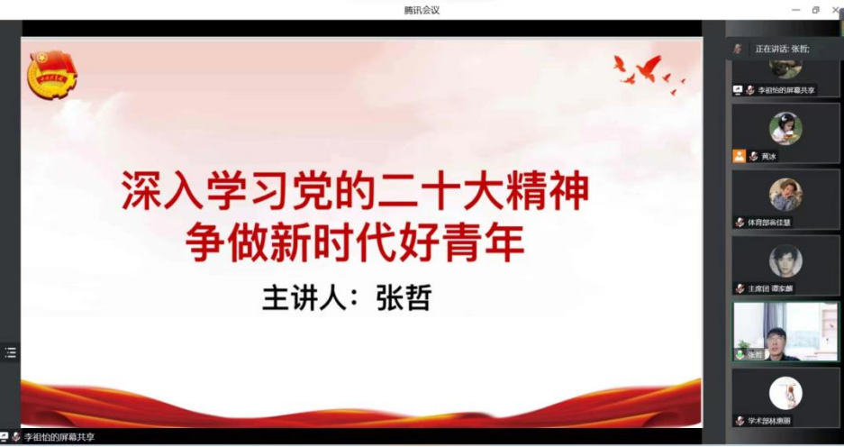 为深入学习宣传贯彻党的二十大精神,引导学生会成员将学习党的二十大精神与实际工作相结合,主动实现学习成果的转化,大会组织了第一次主题团课的学习。bevictor伟德团委书记张哲以“深入学习党的二十大精神,争做新时代好青年”为主题,带领支部团员共同学习党的二十大精神。他提到,作为新时代青年,要认真学习党的二十大精神,提升理论素养,努力做到思想有高度,认识有深度。作为学生会成员,要深刻把握新时代学生会组织改革的要求和重点,努力争当表率,发扬优良传统,积极开拓创新。他勉励同学们勇于担当时代使命,争做有理想、敢担当、能吃苦、肯奋斗的新时代好青年,为中华民族伟大复兴注入源源不断的青春力量。