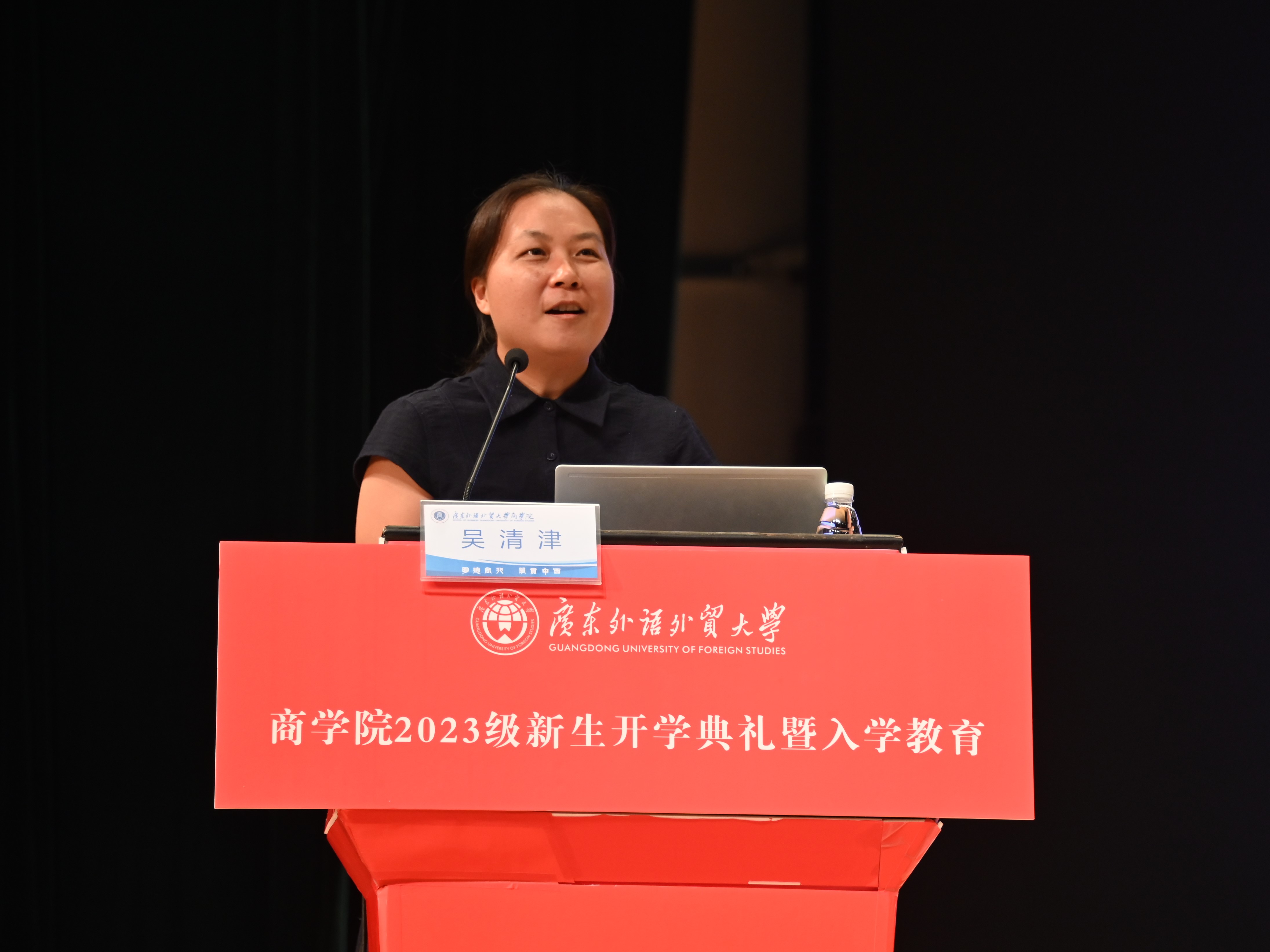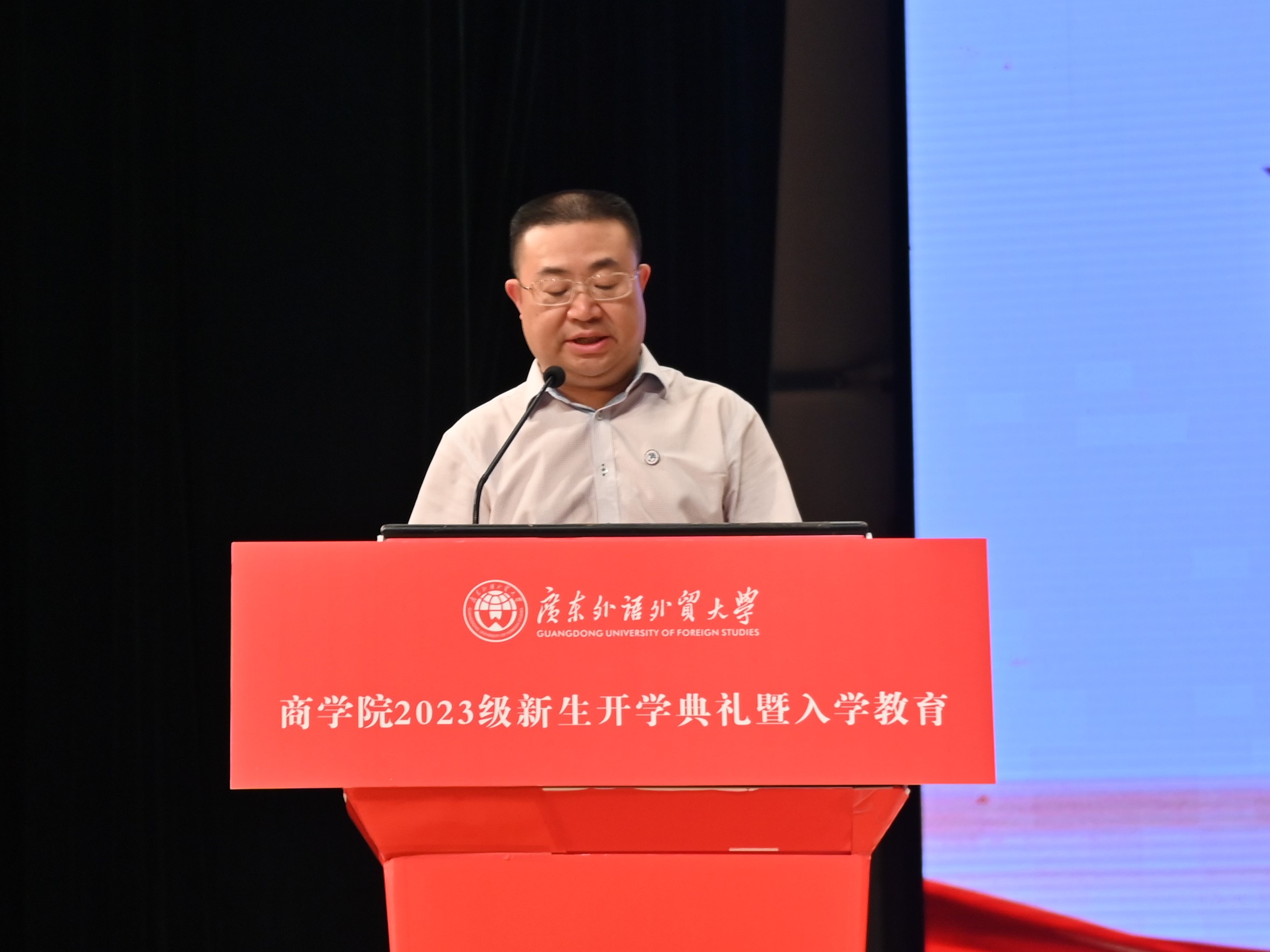 典礼在庄严的国歌声中拉开序幕。首先,袁登华副院长(主持工作)进行致辞,他强调广外bevictor伟德是以“全球视野、中国商道”为办学定位,以“培养国际高端商科人才”为使命,以“成为国际化特色鲜明的高水平bevictor伟德”为愿景的bevictor伟德,并生动介绍了学院悠久的发展历程、健全的学科体系、成绩突出的伟德bv国际体育成果和特色鲜明的人才培养目标。袁登华勉励全体新生树立理想信念,坚持实事求是,立足科学前沿,以新时代一流大学精神为指引,勇敢肩负起时代赋予的重任,牢记“明德尚行,学贯中西”的广外校训,秉持商院学子的良好作风,书写更精彩的人生篇章。