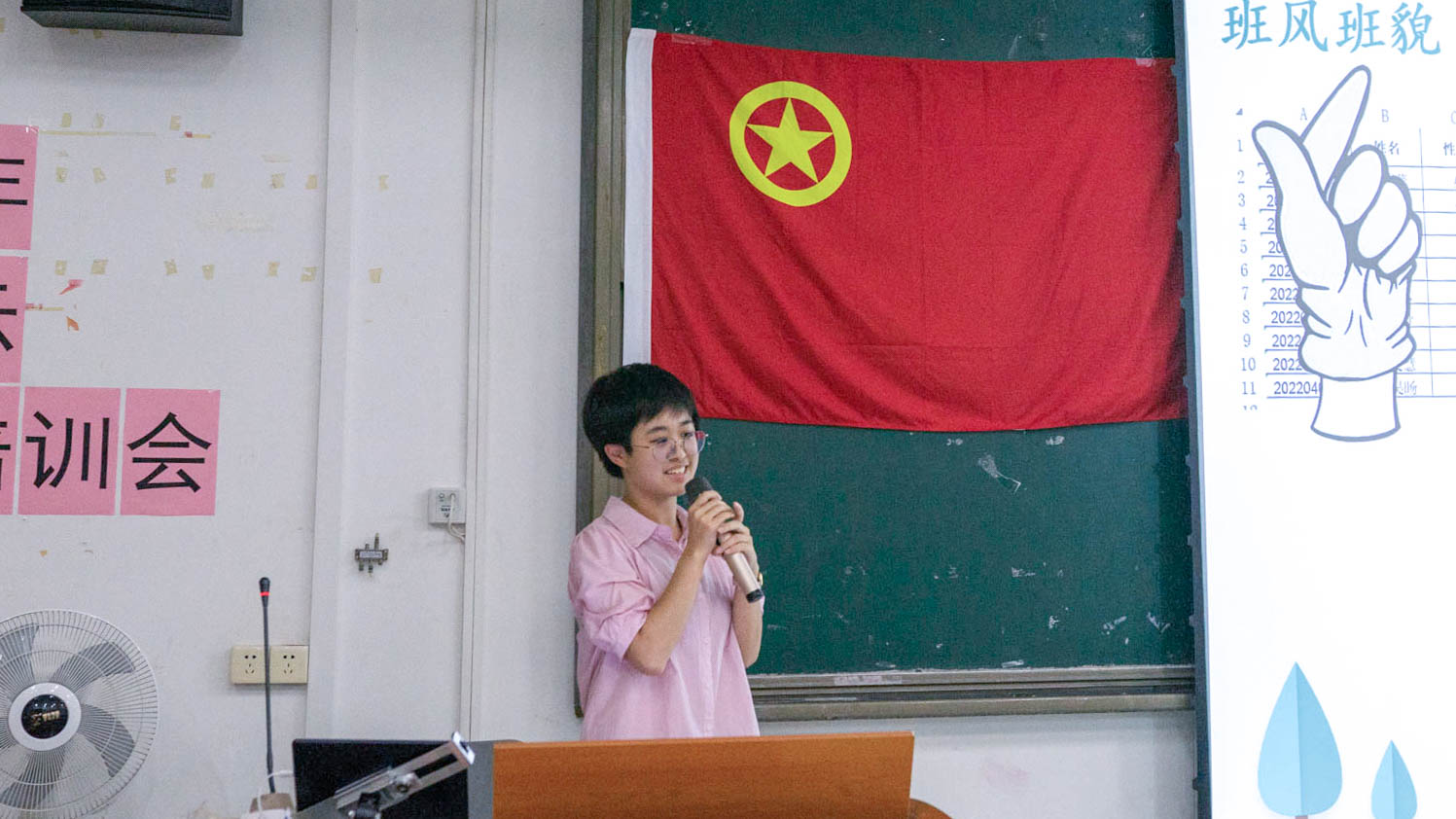 电子商务2202班班长林昱均分享了班风班貌、班委和团支部工作情况、班级的有趣瞬间及工作经验,展现了班级成员的凝聚力、互帮互助的友爱氛围与团干班干相互配合的默契。