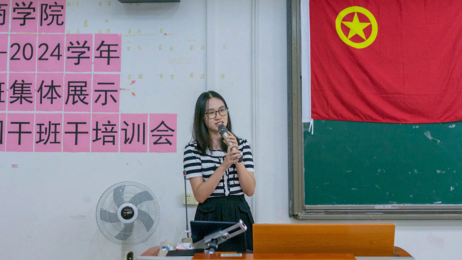 沈长霞在致辞中表示,2023级班级和团支部的顺利组建,为学院的班团组织建设增添了一抹亮色、注入了新的活力与生机。她向2023级团干班干提出了三点期望:一是希望同学们积极做新思想的领学人,共同营造良好的班风学风、构建友好互助的集体;二是希望同学们认真学习团的章程,履行团员义务,严格要求自己,发挥学生骨干的模范带头作用,服务同学,传承榜样力量;三是希望同学们继承发扬优秀的工作作风,做好团支部和班级建设工作,为学院的建设发展凝聚力量,添砖加瓦。