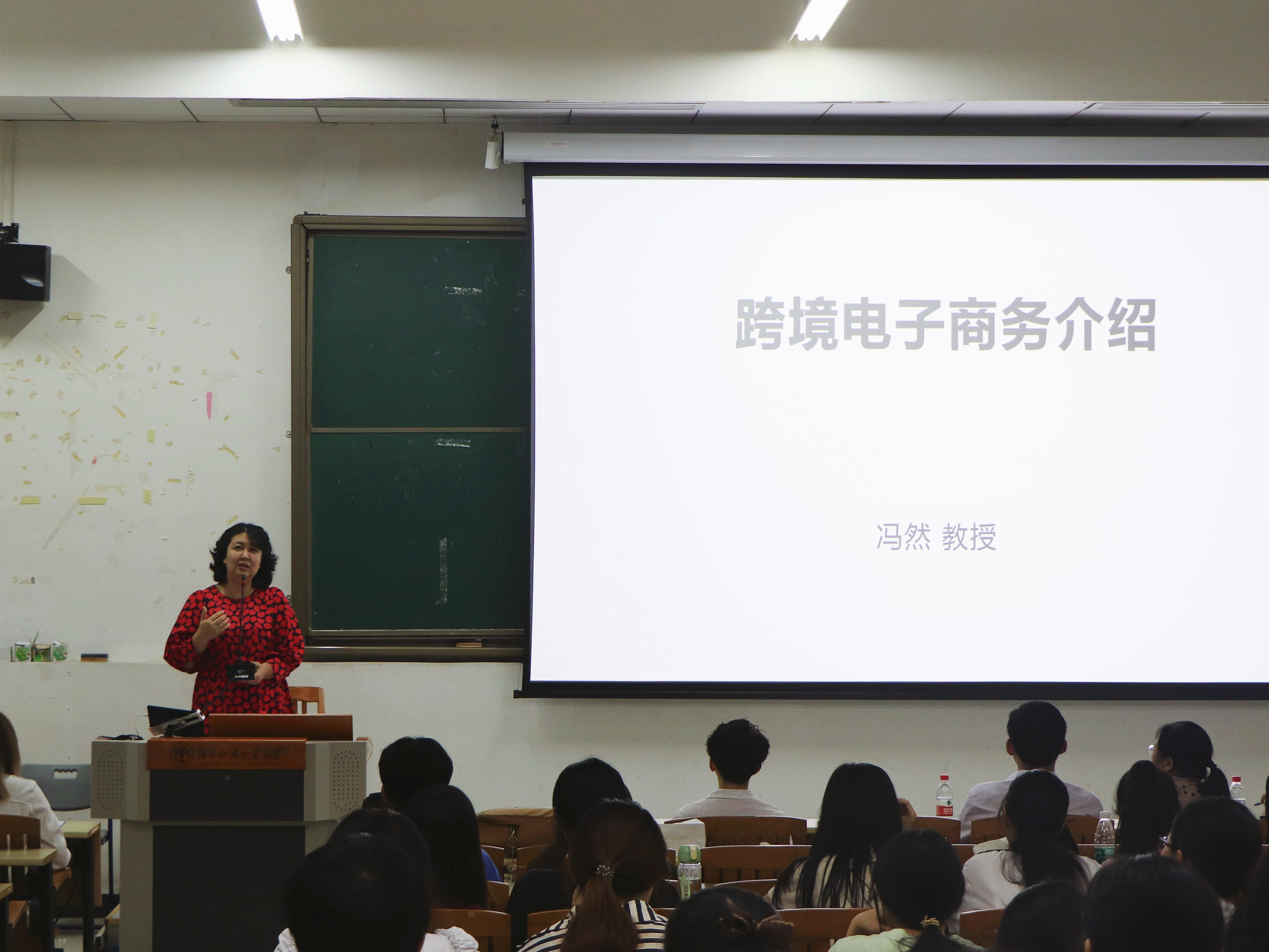 开班仪式后,冯然教授讲授开班第一课。冯然为同学们详细介绍了跨境电商的历史和发展。她以美苏冷战时期通信系统的发展讲述了网络的发展,强调了互联网涵盖全球速度之快,并解释了电商是如何依托互联网发展起来的。她介绍了电子商务和跨境电商的区别以及跨境电商的发展前景,精彩的讲述让同学们对跨境电商有了初步的了解,激发了同学们的学习兴趣。