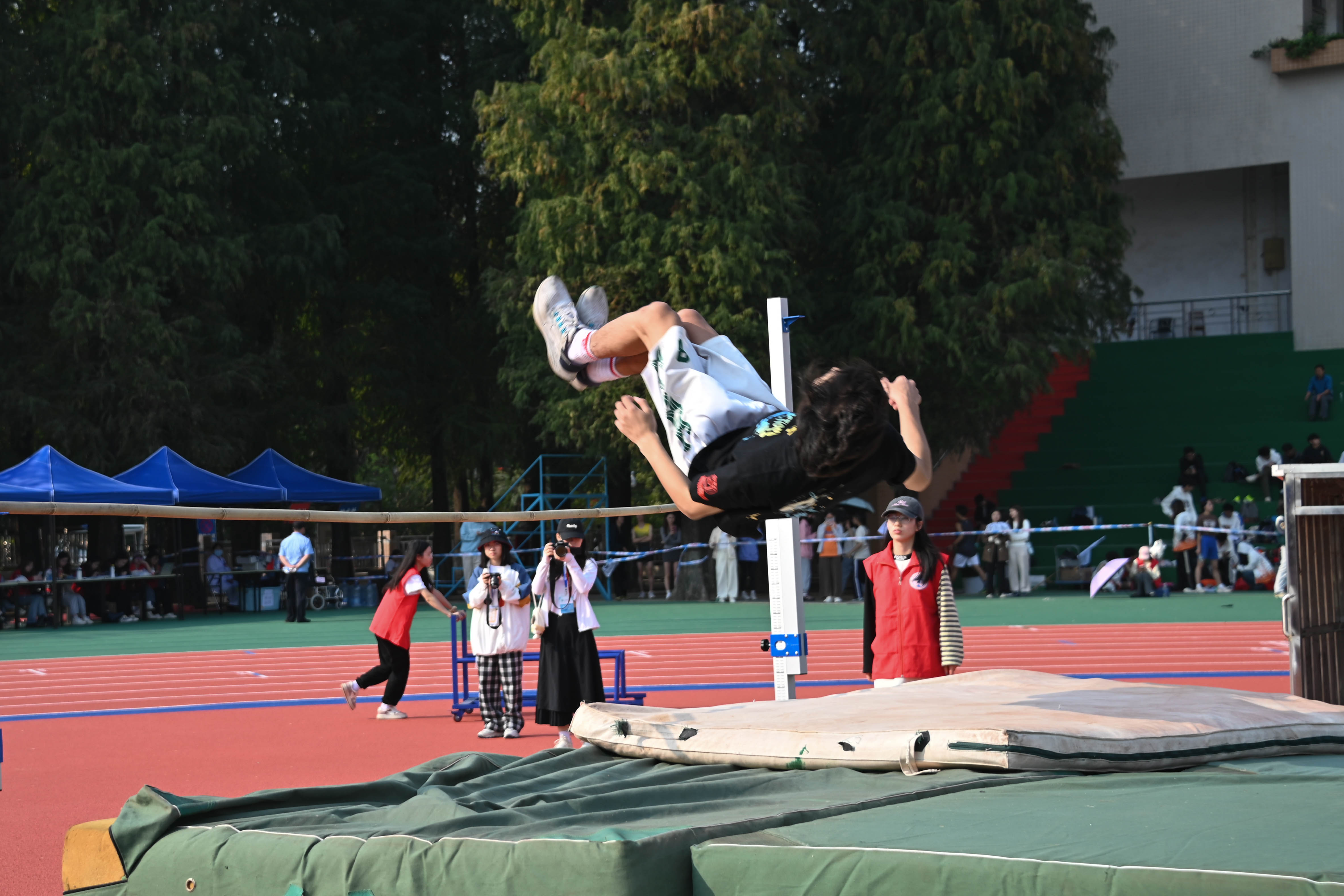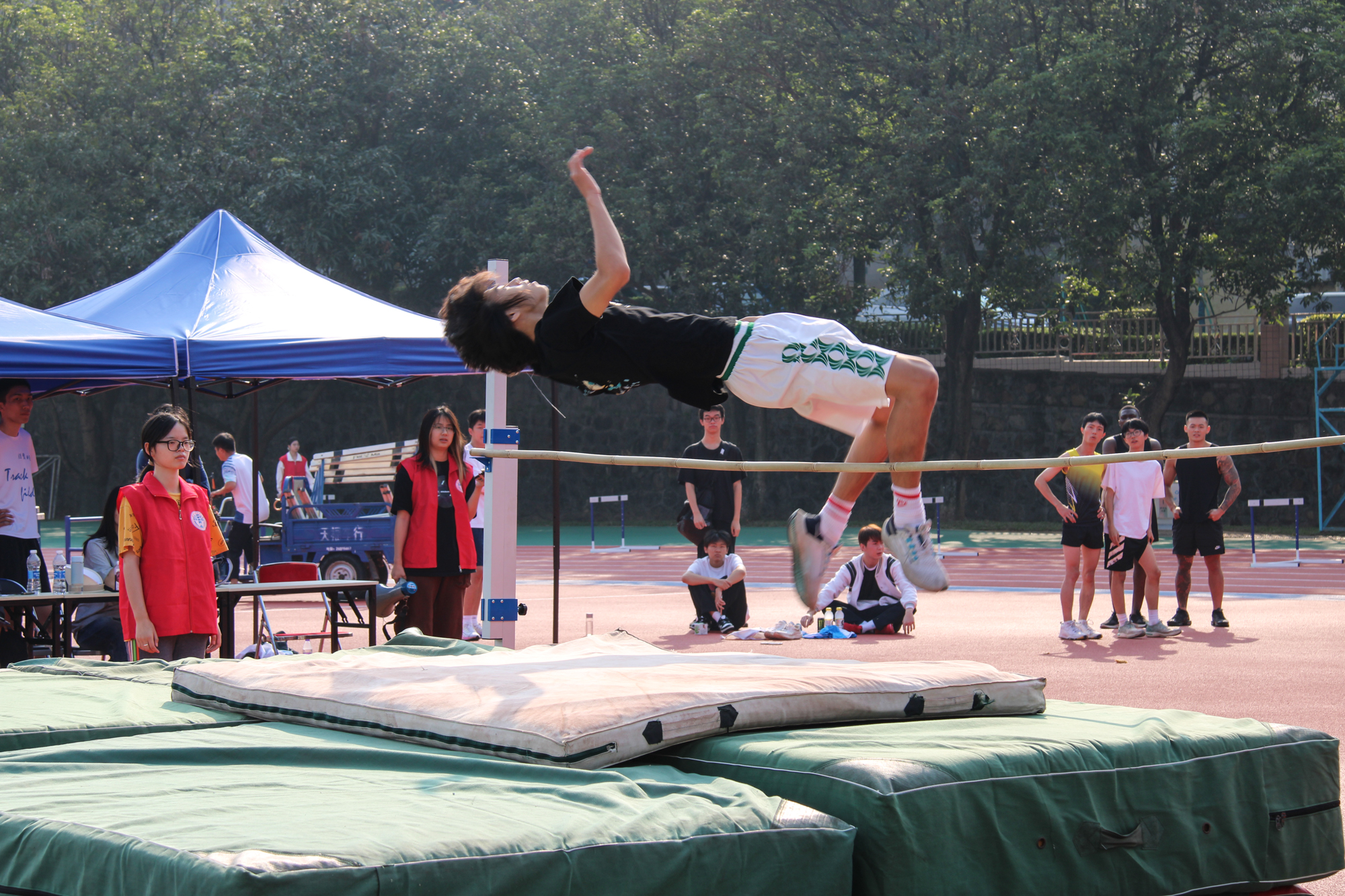 凝神聚气,助跑踏条,每一次迈步都是信念的凝聚;奋勇跳跃,无畏腾空,每一滴汗水都折射青春的光芒。尘埃落定,沙尘飞扬,每一道目光都见证喜悦与感动交织交融。选手们依次起跳,距高者为胜。最终,廖宣霖获得男子跳高第一名。