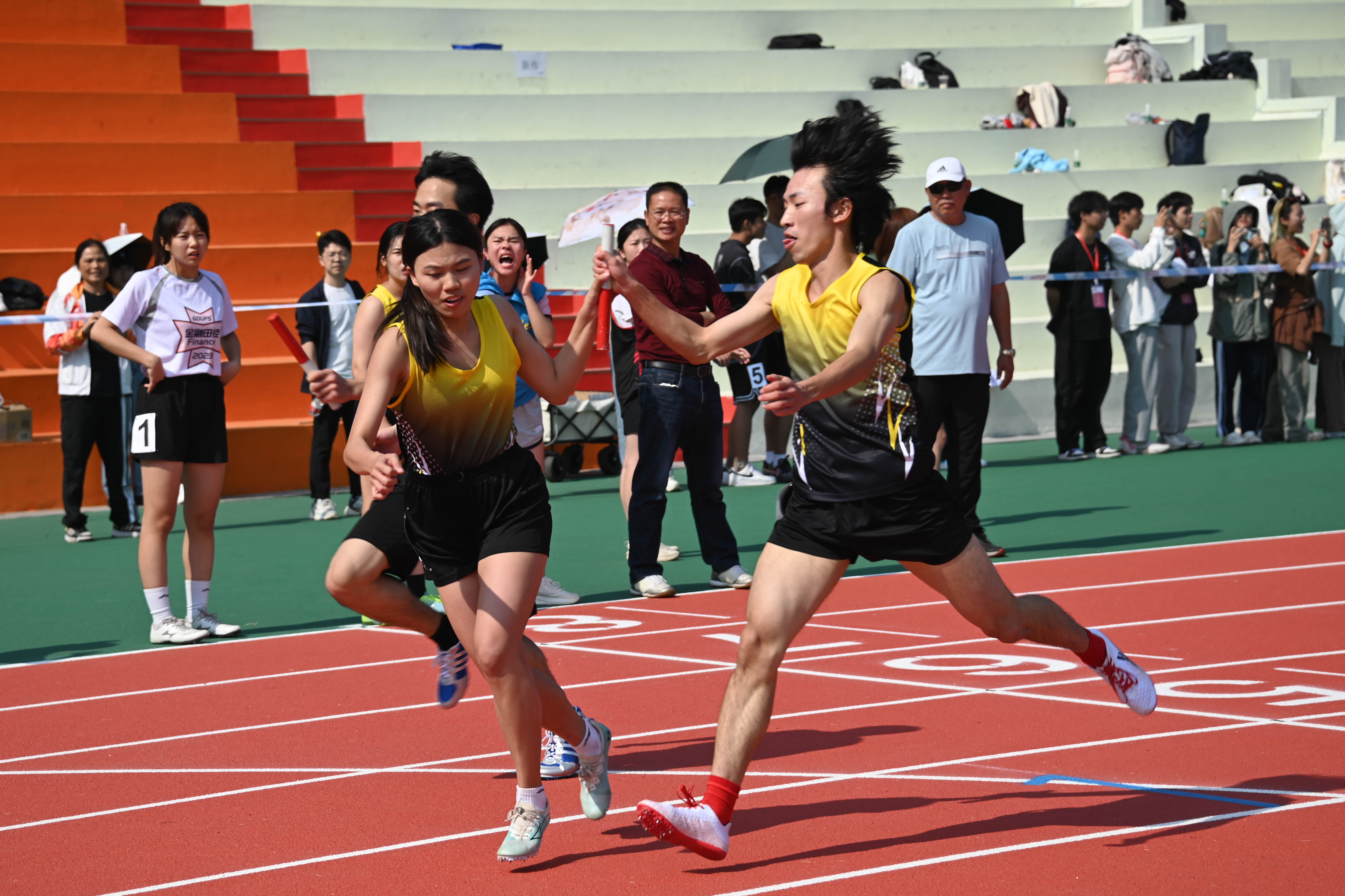 这是一场时间与默契的交锋,每一次交接棒精准的传递,都传递着信任与希望。随着口号一声令下,运动员们你追我赶,勇争第一,一根根接力棒传递着每个运动员团结友爱的精神。每一个奋力奔跑的脚步,都是突破自我极限,队友的鼓励与希冀,促使商院运动健儿们奋勇向前。最终,李梦晓、李丹丹、苏紫珊、杨谨闻获得女子4*100米接力第一名;杨谨闻、文达勋、李丹丹、陈子扬、向晓莉、周毅获得混合6*200米接力第一名。