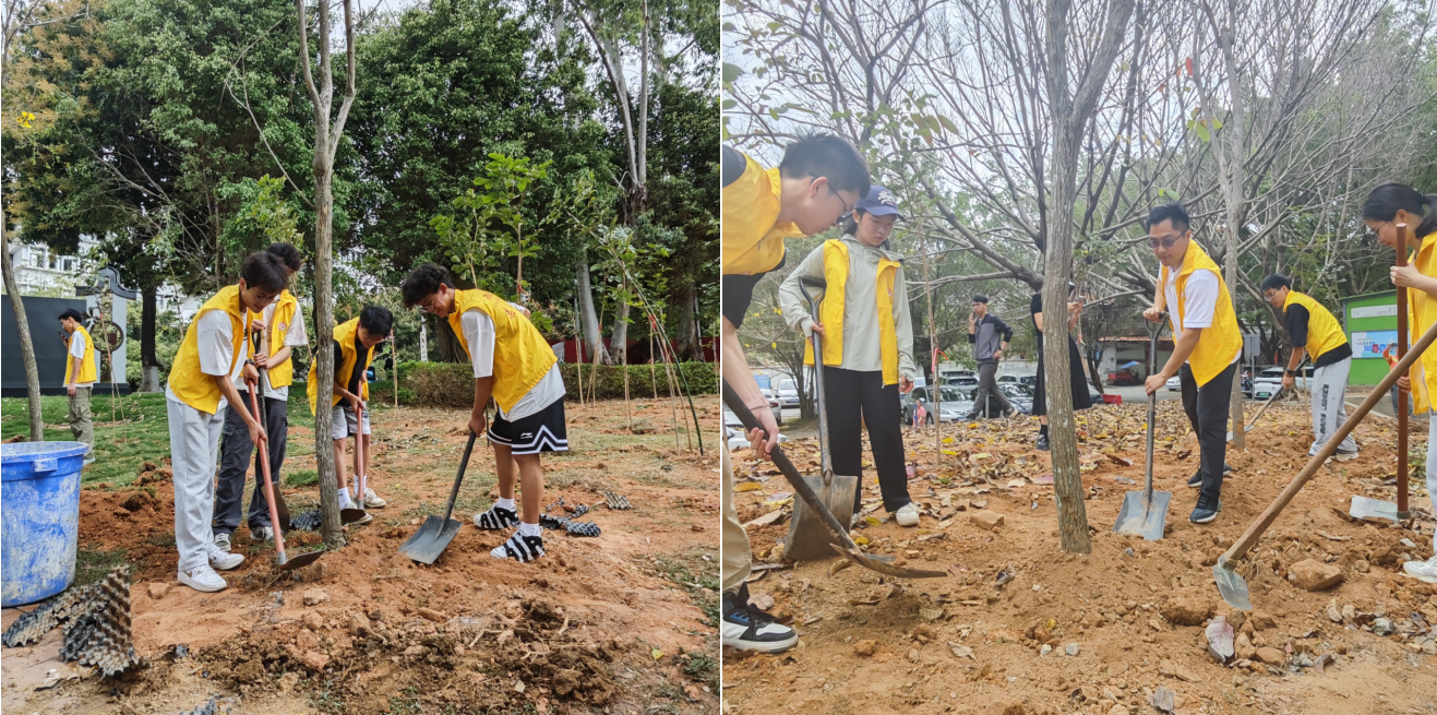 到达目的地后,在详细学习植树要领后,志愿者们迅速明确分工,有序开展植树活动。现场一片热火朝天的景象,大家齐心协力,扶苗培土、浇水定根,每一个步骤都做得认真细致。经过共同努力,20株黄花风铃木在土地上 “安家落户”。看着亲手种下的树木,同学们的脸上绽放出灿烂的笑容,成就感满满。