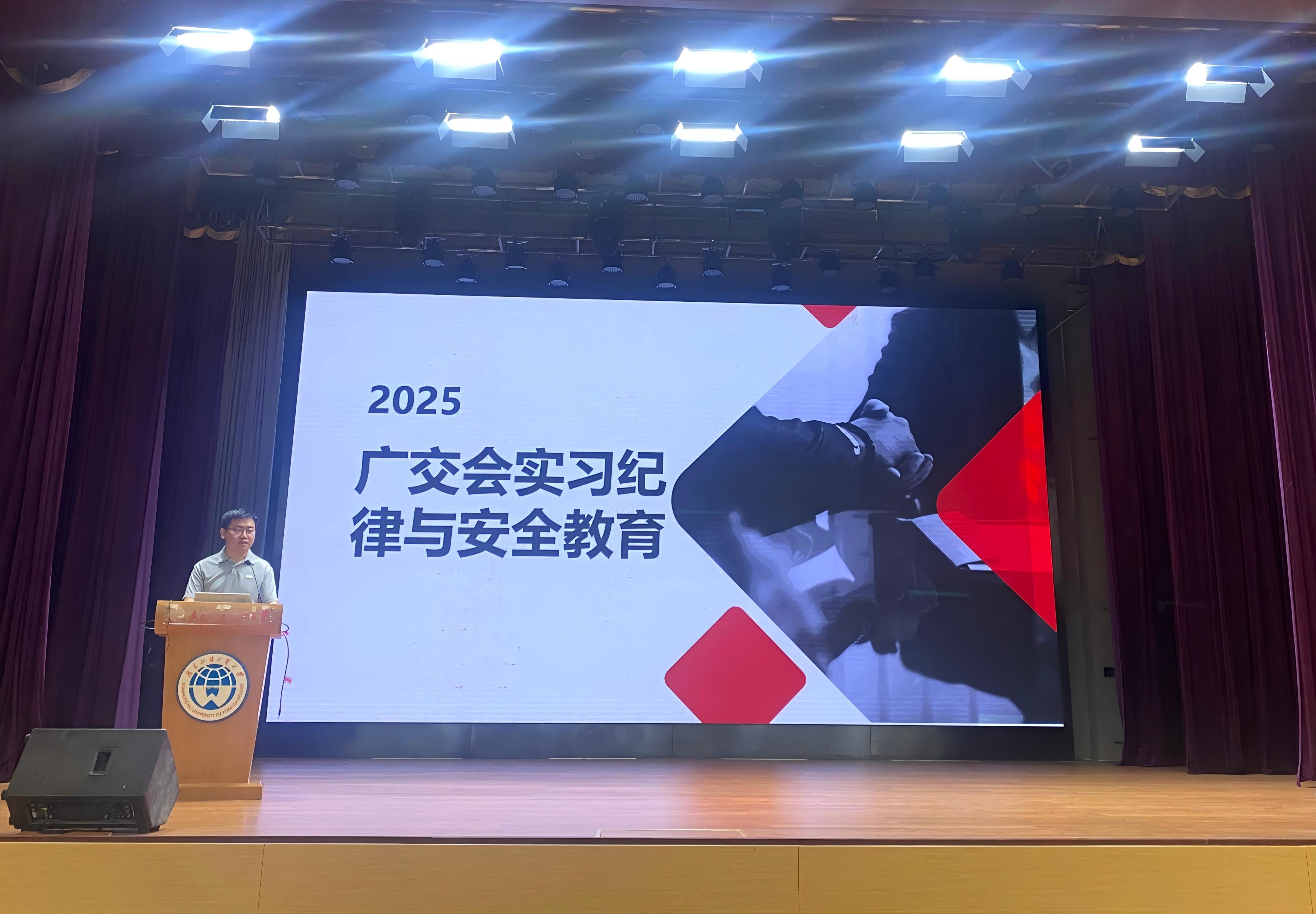最后,黄仕恒就实习纪律和安全事项进行强调。他强调同学们应加强纪律意识、安全意识和责任意识,确保自身行为符合广交会的高标准要求,他希望同学们用实际行动展现出当代大学生的良好形象。
