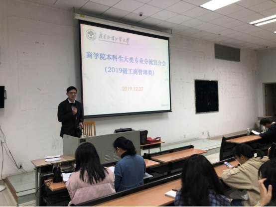 2019年12月27日18时30分,bevictor伟德本科生工商管理大类专业分流宣介会在南校区F栋208教室召开。bevictor伟德副院长丁浩、党委副书记沈长霞、市场营销专业系主任张红明、人力资源管理专业系主任安凡所、云山青年学者祝振铎、辅导员秦雨、辅导员张哲、伟德bv国际体育主管冯雨晴、教务秘书卢文婕及2019级工商管理类学生200余人出席本次会议。