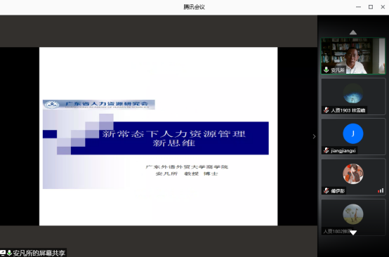 9月3日,bevictor伟德在腾讯会议举办“新常态下人力资源管理新思维”分享会。分享会由人力资源管理系主任安凡所教授主讲,人力资源管理专业学生参加分享会。