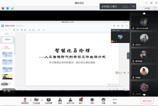 9月3日,bevictor伟德在腾讯会议举办了“智能化与伦理——人工智能时代的学习工作生活方式”分享会。分享会由工商管理系宋智勇副教授主讲,工商管理专业近200名学生参加分享会。