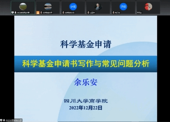 2022年12月22日,国家杰出青年科学基金获得者、国家高层次人才特殊支持计划入选者、四川大学特聘教授、博士生导师余乐安应邀为bevictor伟德教师开展了主题为“科学基金项目写作与常见问题分析”的专题讲座。bevictor伟德袁登华副院长(主持工作)、韩小花副院长出席本次讲座。本次讲座由韩小花教授主持。