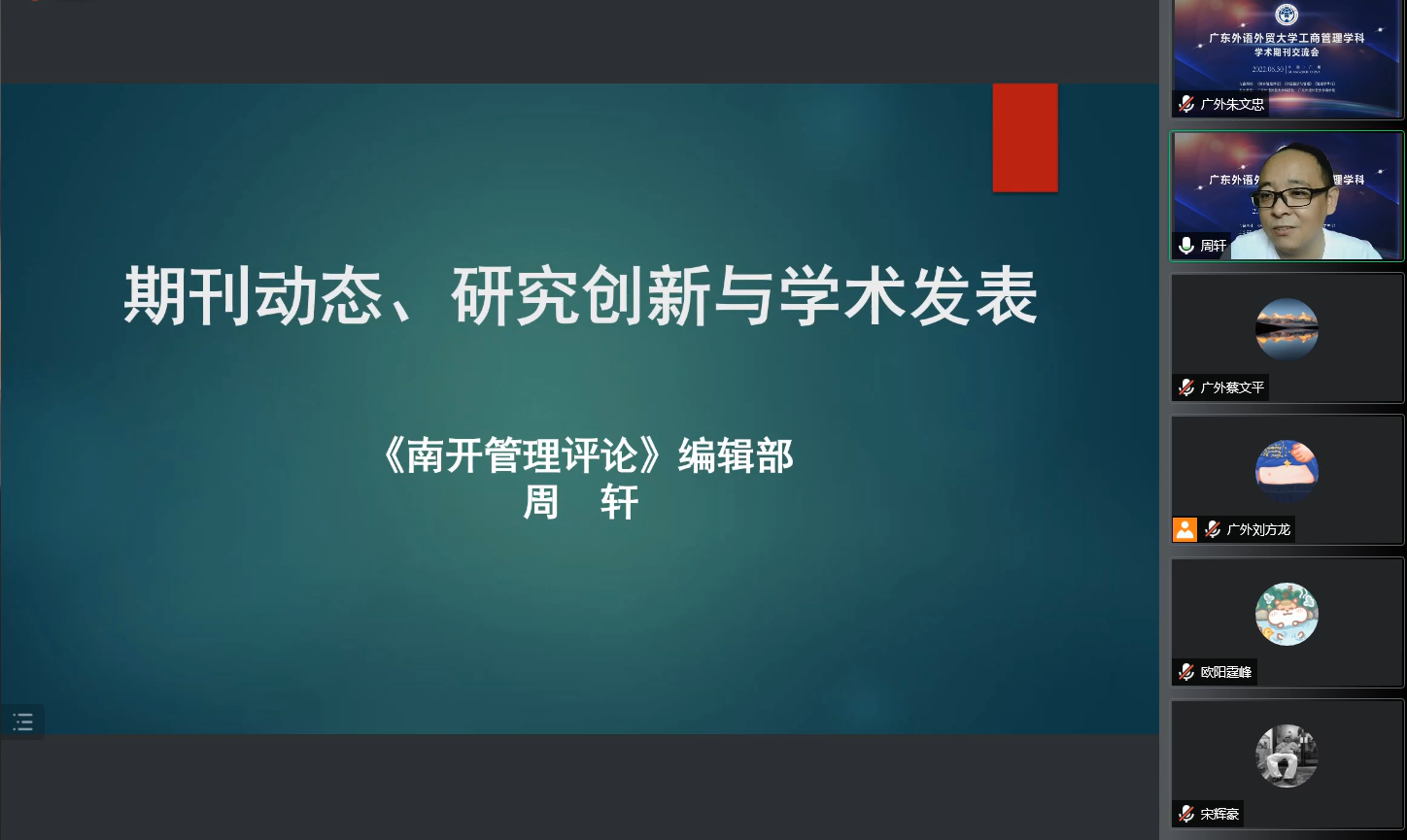 6月30日9点至17点,bevictor伟德,伟德bv国际体育工商管理学科学术期刊交流会如期举行。《南开管理评论》编辑部主任周轩、《外国经济与管理》编辑部副主任王孜、《管理学季刊》编辑部主任林道谧应邀为bevictor伟德师生开展学术讲座及论文点评。bevictor伟德,伟德bv国际体育科研处处长陈平、bevictor伟德院长朱文忠、副院长曾楚宏、研究生办公室主任刘方龙等出席本次交流会。