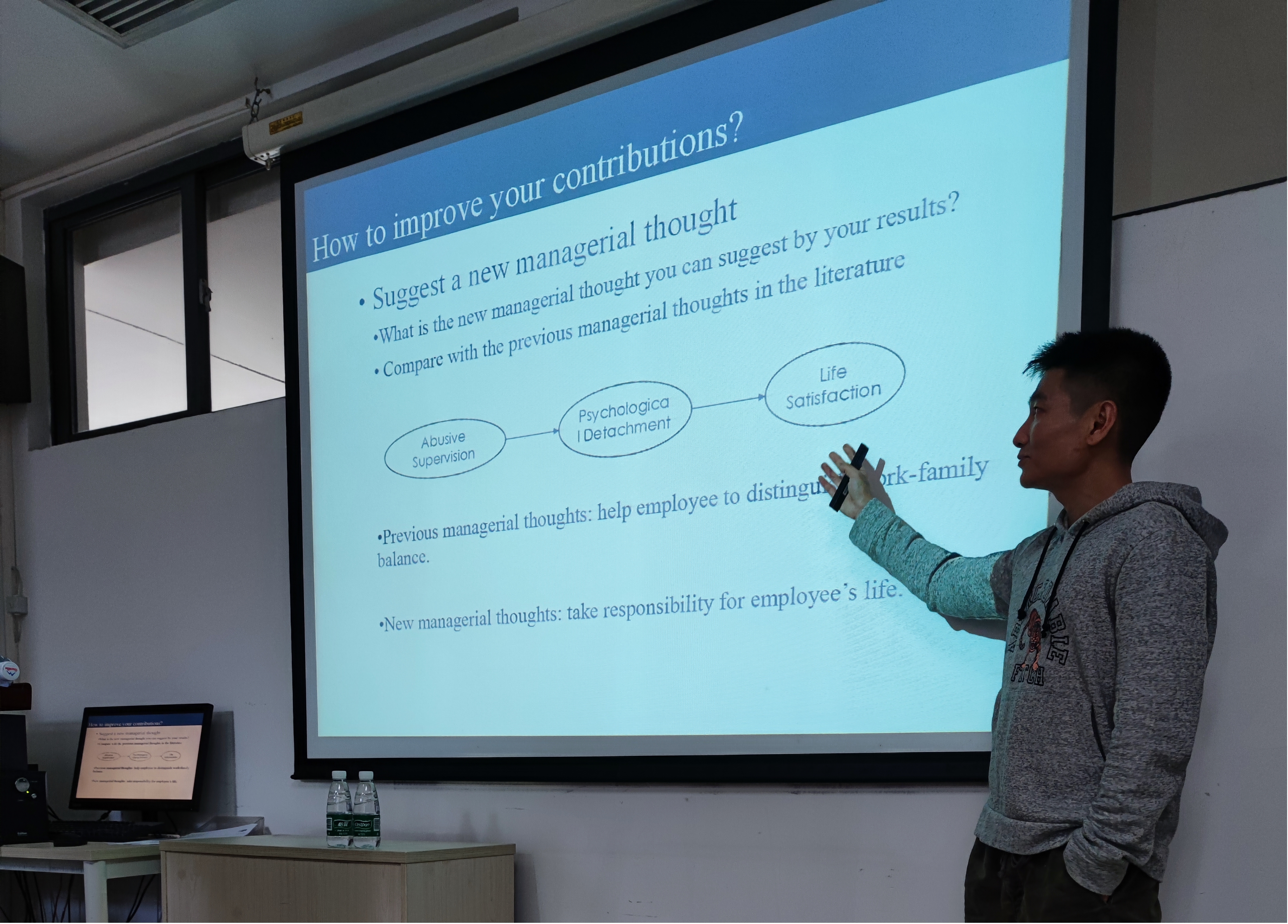 在论坛的最后一天,严鸣教授和在座师生分享了具体的管理学实证研究方法,主要介绍管理学研究中常见的交互效应、中介效应和间接效应,并针对问卷调查、实验、定性分析进行详细讲解,而多层线性分析、结构方程模型以及mplus应用、多层数据的多层结构方程模型分析、协同一致性分析等具体实证方法的介绍更是让在座师生倍感不虚此行。最后,严鸣教授还针对如何与其他科研人员进行学术合作研究,和在座老师进行探讨,相信这对在座师生提高学术研究效率具有极大启示。