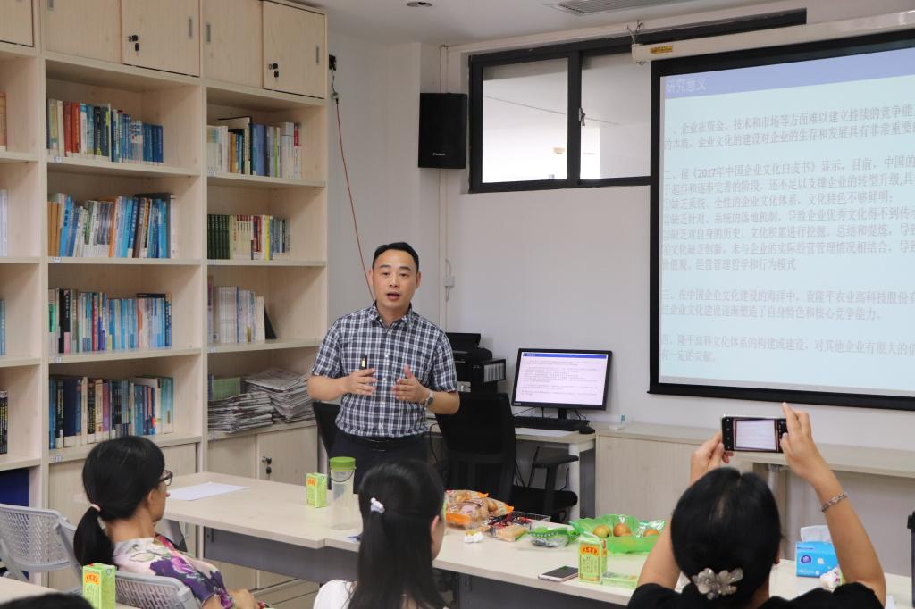 刘方龙博士以“探索《隆平之道》理念文化体系的构建——基于扎根理论的案例研究”为题进行分享(该文发表于《理评论2019年第6期。刘方龙博士以访谈袁隆平院士为核心素材,收集整理了10万余字的案例记录,通过扎根理论的饱和度分析,发现了在传统企业文化理论框架中被学者忽视的核心概念——企业文化品格同时,他还基于案例实践和理论框架,推到出企业文化多层次结构模型,这在很大程度上丰富了企业文化理论。
