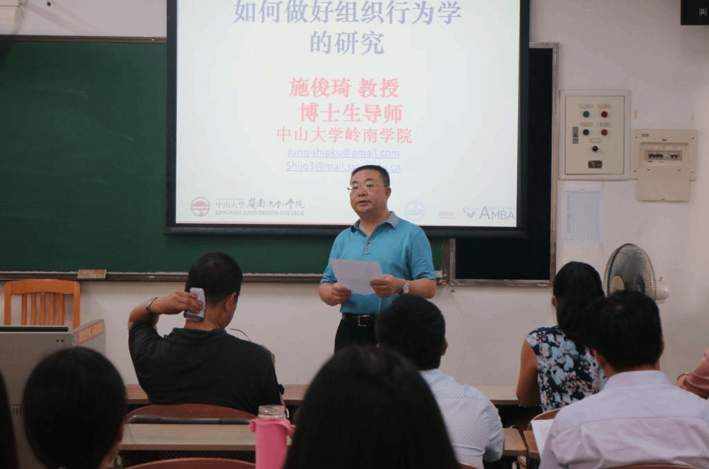 紧接着,施教授讲述了如何做好组织行为学的研究步骤。第一,一定要考虑研究的样本。针对研究的主题,采取合适的样本,对研究的结果有重要影响;而样本量的大小、类型,又在研究中起到重要的作用。第二,要考虑研究的创新性,如理论创新、研究设计创新等。研究要有创新,选题很关键,而要做好创新,必须阅读充足的文献,在文献中对比和检验已有理论之间的关系,从而获得创新灵感。第三,要做好统计分析工作。目前,我们很多老师和学生,使用的统计方法都需要紧跟时代发展步伐,利用多元化的统计方法,如结构方程等科学统计方法,通过数据的分析获得研究结论。