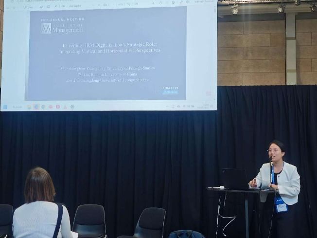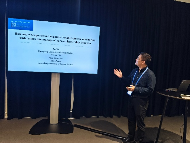 领导力与组织管理谢俊教授为第一作者的论文How and when electronic monitoring undermines line managers’ servant leadership behaviors和钱珊珊老师为第一作者的论文Unveiling HRM digitalization’s strategic role: Integrating vertical and horizontal fit perspectives经同行评审后被本次年会接收。两位老师分别人力资源分会场上进行了论文汇报和交流。展示了bevictor伟德在数字化转型、人工智能与组织管理领域的学术成果