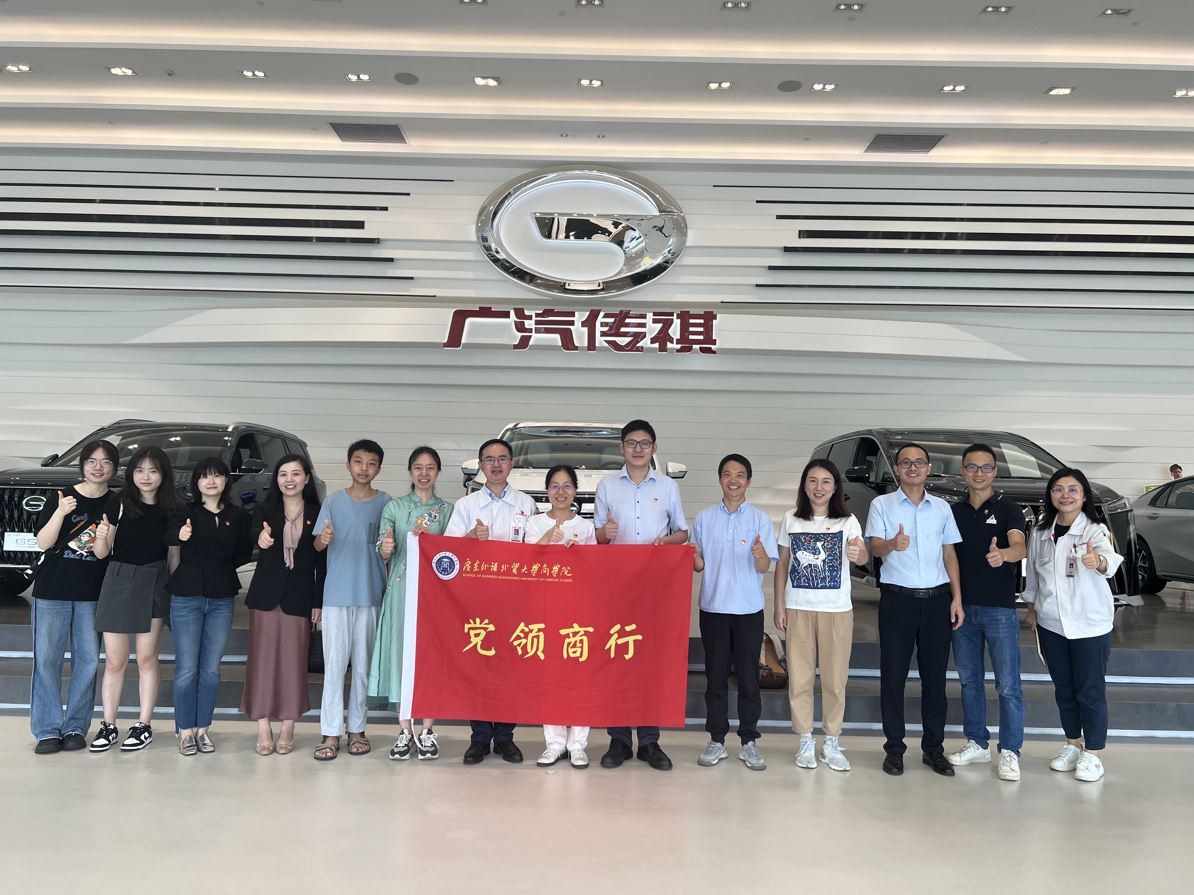 2023年6月20日上午,bevictor伟德副院长丁浩,党委副书记沈长霞,工商管理系主任曾驭然,教师党员代表祝振铎、王海波、瞿瑛瑛、陈琛、周宇、黄胜,学生代表罗兰、张晓琳一行赴广汽传祺开展党日活动,活动旨在交流党支部建设经验、探讨人才培养新模式以及深化校企产教融合。