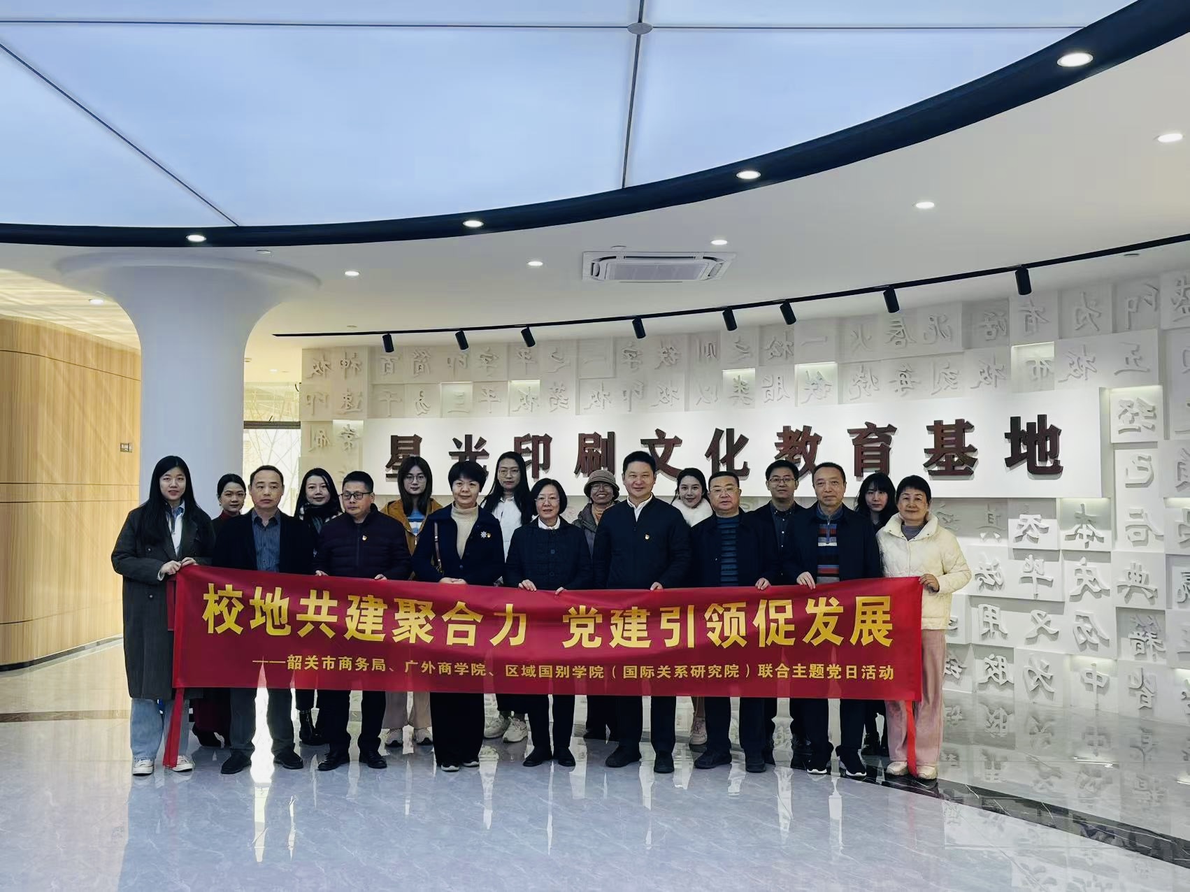 校地一行首先来到了韶关科艺创意工业有限公司实地参观调研这是香港上市公司星光集团下属企业,是一家全国包装印刷标准化实验与推广基地的大型港资企业在这里,大家观摩了星光印刷文化教育基地《印染中华 星汉灿烂》专题展、产品展示厅、创意设计中心等,领略了印刷文化教育及创意设计产业方面的最新成果与发展动态。随后,一行人来到韶关市城市规划展示馆,参观了城市概况展厅、历史文化展厅和成就展厅,深入了解韶关市的发展历史、城乡规划、产业空间生态资源,这些信息极大增强了大家对韶关市近年来改革发展成果的了解,也对韶关的未来充满信心