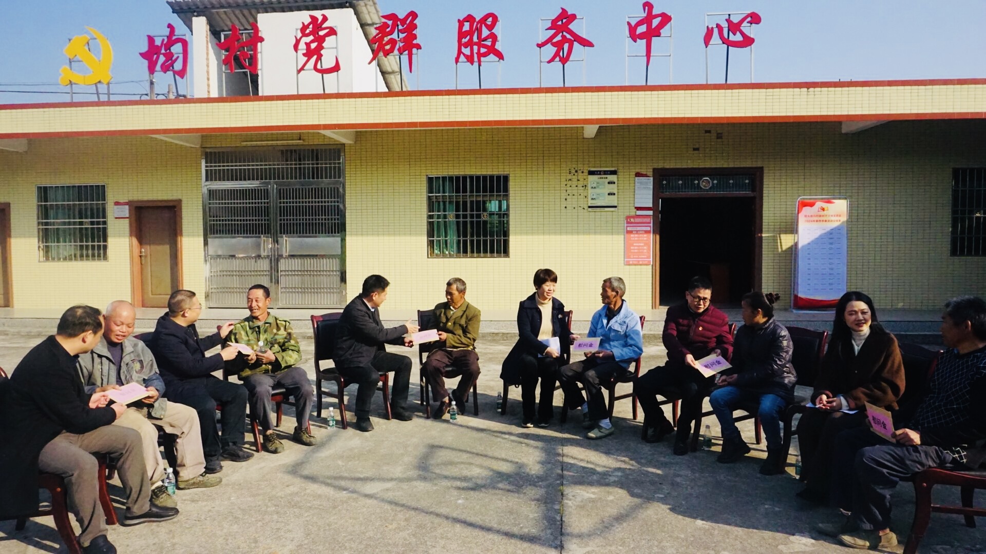随后,师生党员一行前往了韶关市乳源县桂头镇均村帮扶点开展乡村振兴慰问工作。冬日的阳光晒在身上暖暖的,师生党员与脱贫户围坐在一起,了解脱贫户生产生活情况,为他们出主意想点子,并鼓励他们保持积极乐观的生活态度。最后党员们为农户送上慰问金。