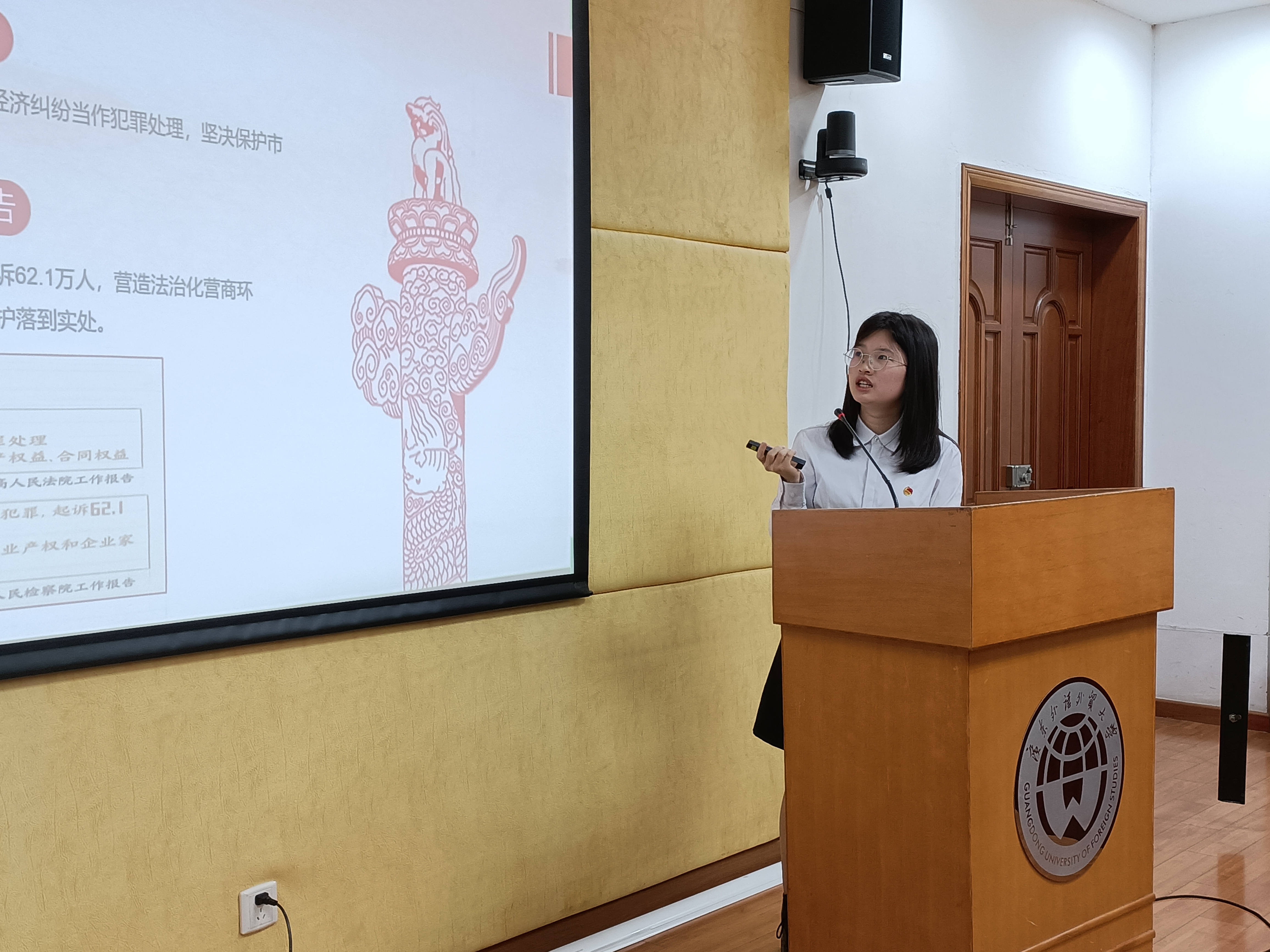 分享会最后,沈长霞作总结发言。她充分肯定了粤商晋商文化交流对开拓商院学子多元化商科思维的积极作用,赞扬了同学们在广交会上的优异表现,勉励同学们深入学习贯彻党的二十大精神,根植中华优秀传统文化,练就真才实学,涵养家国情怀,积极投身国家建设与乡村振兴事业,放眼世界,筑梦未来,共同为全面建设社会主义现代化国家新征程和实现中华民族伟大复兴贡献自己的青春和力量。