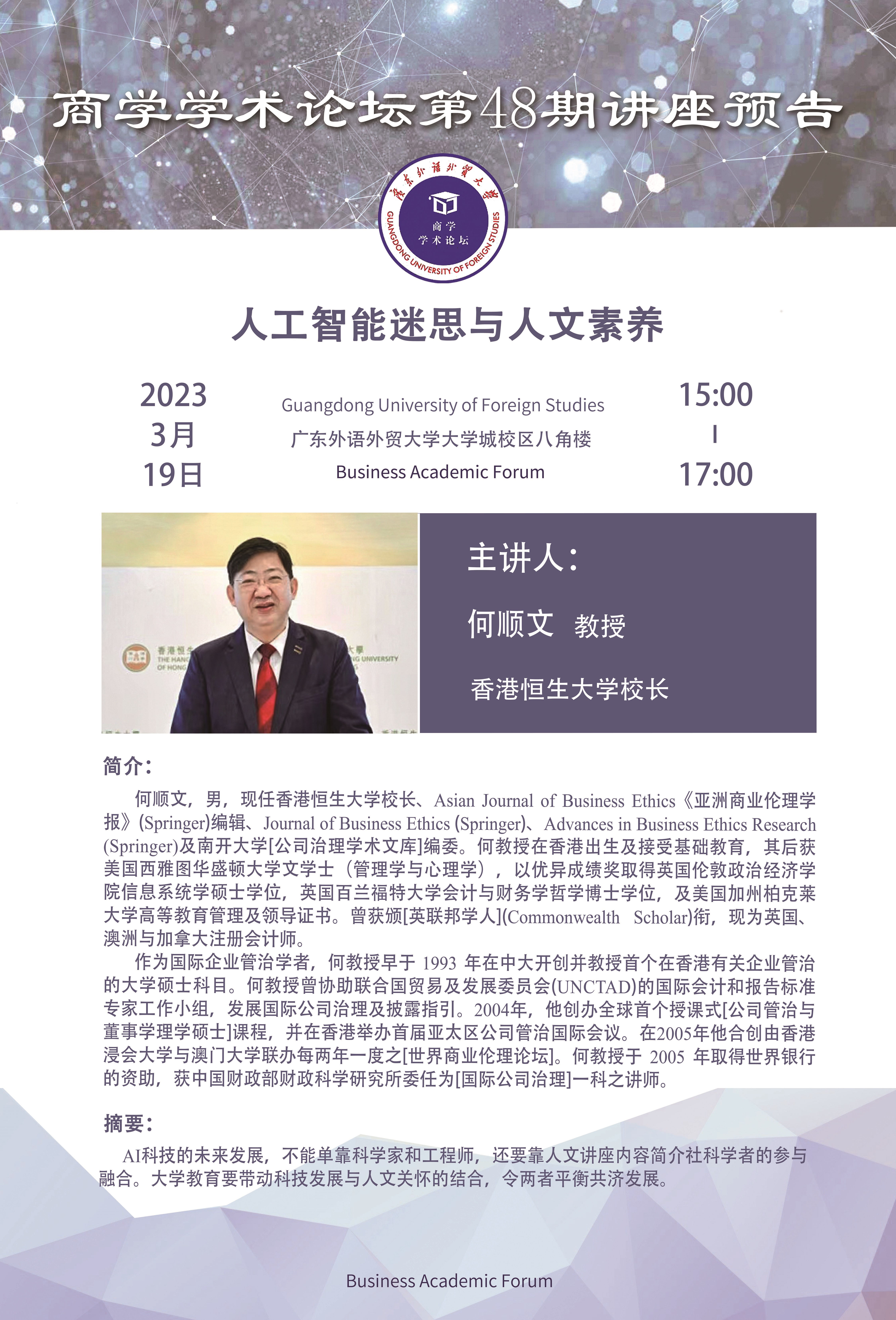 商学学术论坛第48期讲座预告:人工智能迷思与人文素养